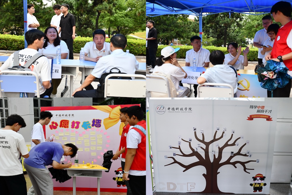 “笃学中德 荫育千才”主题互动:树间定格瞬间,方寸寄托心愿。学院打造“笃学中德 荫育千才”特色活动,将迎新互动与校园景致结合。志愿者用“拍立得”定格新生瞬间,贴于树木展板之上,新生宛如新叶,勾勒立德树人成长画卷。一旁中德心愿墙贴满“学好德语”“赴德留学”等心愿,既承载未来期许,也让互动更显温馨紧凑。