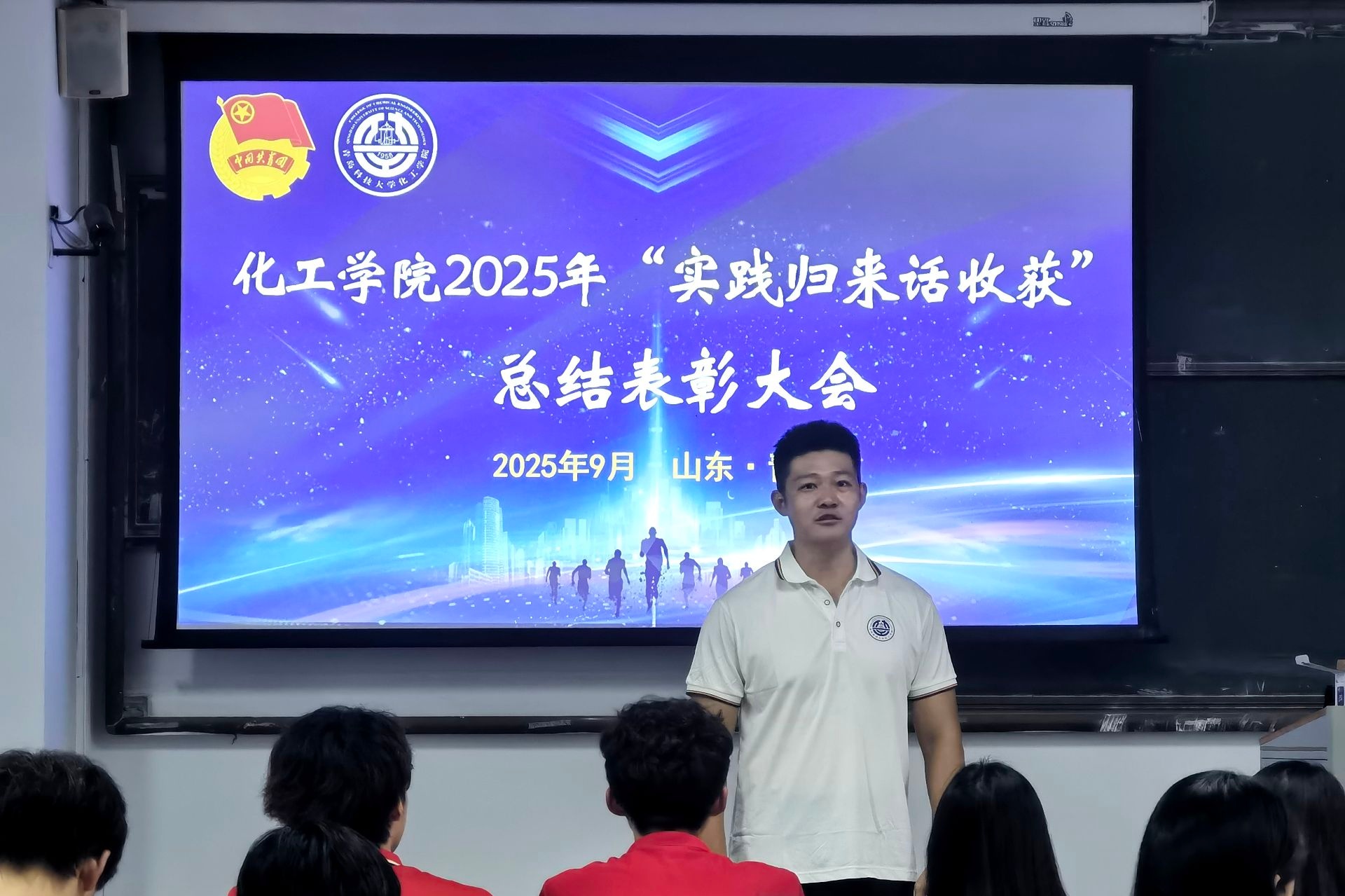 为深化实践育人成果,鼓励学生将课堂学习与社会实践紧密结合,化工学院于2025年9月16日下午两点在四方校区第一教学楼201教室开展“实践归来话收获”交流分享会。化工学院团委书记、学工办主任杜宗杰,社会实践负责老师、2024级辅导员赵建滕出席本次分享会。