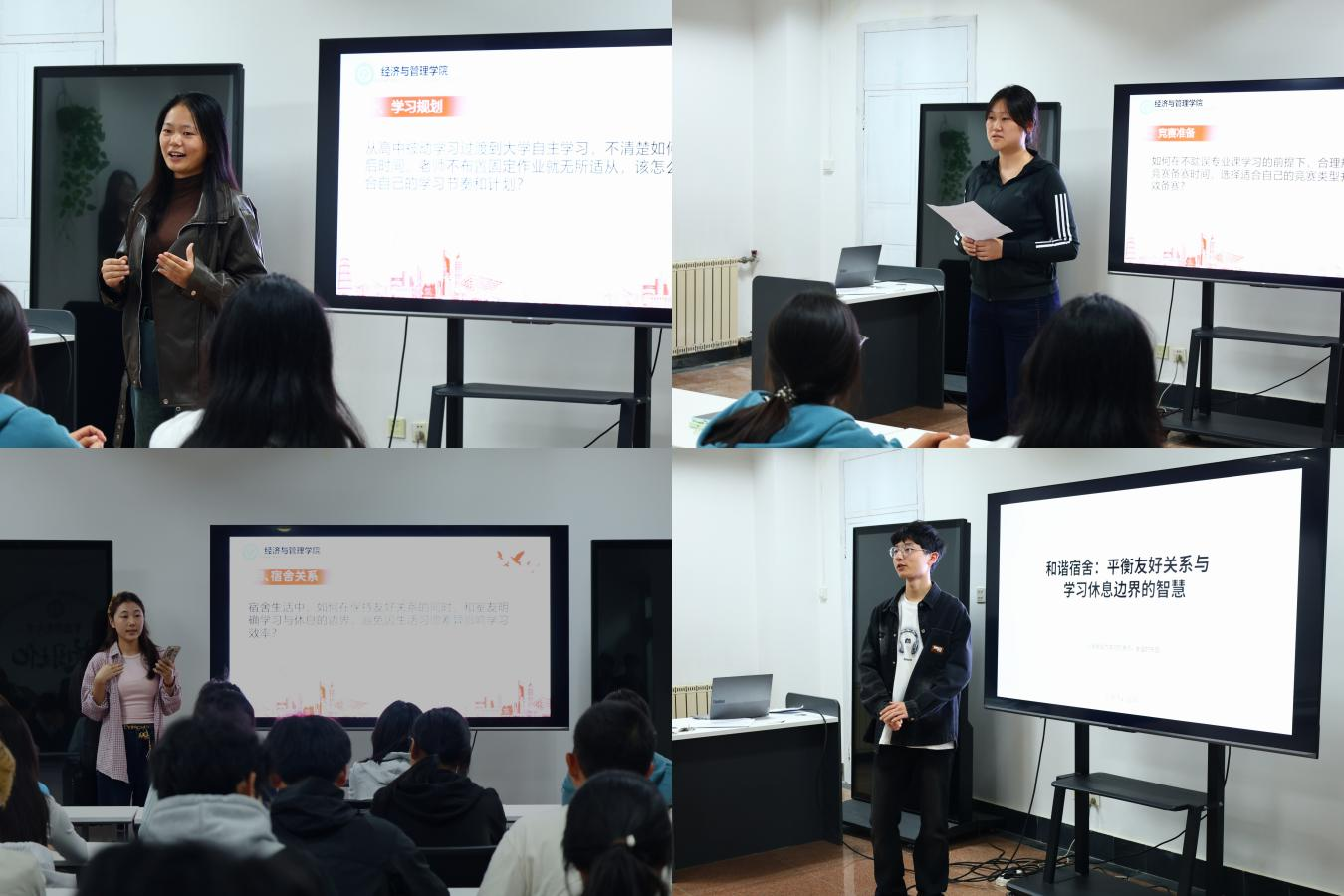 此外,为助力新生更快融入校园,学院还开展“启航新程,寄语未来”新生老生交流会。交流会分为三个板块,一是由高年级学生分享数学建模、跨境电商、创新创业等竞赛的备赛方法与时间安排,分享实战经验;二是新生畅谈入学感受,辅导员从“优先保障核心学业”“主动对接科研资源”等方面提供切实建议;三是组织新生书写“给四年后的自己”信件,由学院统一保管待毕业交还,以此锚定经管学子新阶段成长目标。