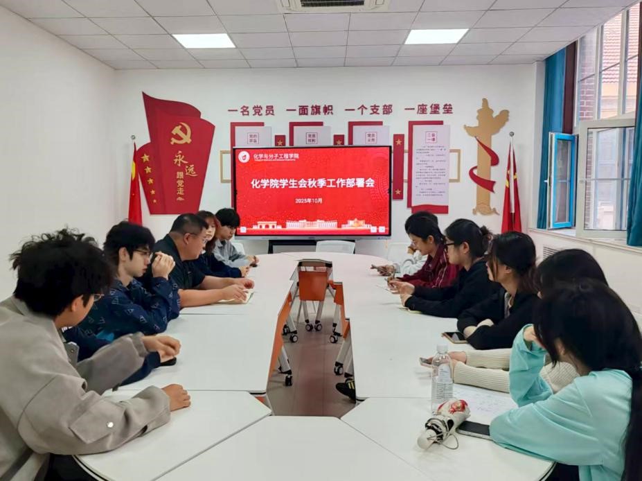 为进一步明确新学期工作方向,凝聚化学院学生会组织力量,推动学生会工作高质量开展,10月12日,化学与分子工程学院团委在学校一号行政楼党建活动室召开化学院学生会秋季工作部署会。会议旨在明确目标、细化分工,确保本学年各项工作有序推进。学生会指导老师信连涛出席会议并作工作指导,各部门学生会主要学生骨干参与会议。