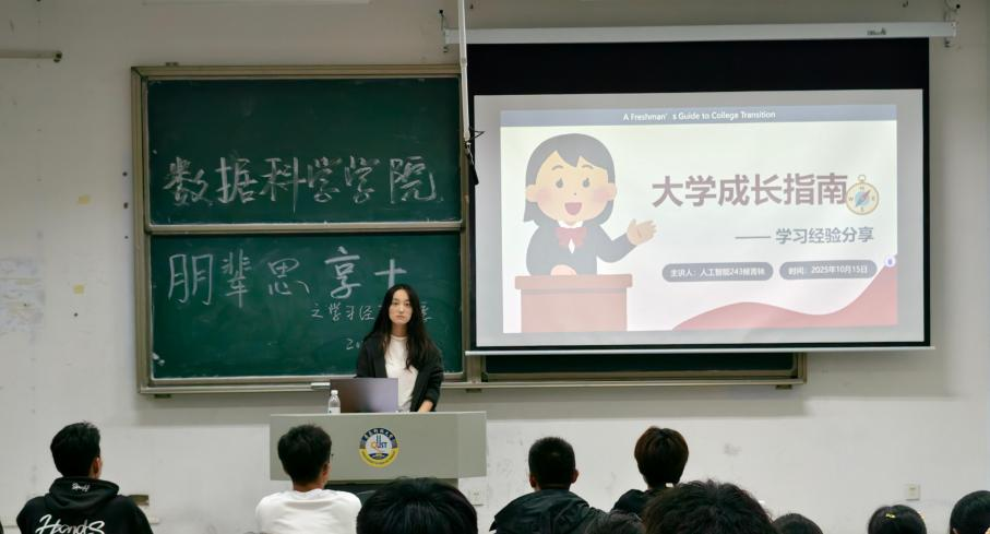 为帮助2025级新生快速适应大学生活节奏,明晰学业发展方向,充分发挥朋辈榜样的引领与帮扶作用,10月以来,数据科学学院团委创新采用“晚自习+经验分享”的特色形式,分专业有序开展“朋辈思享+”之“学长学姐来帮你”系列经验分享会,切实为新生搭建起成长答疑的“桥梁”。