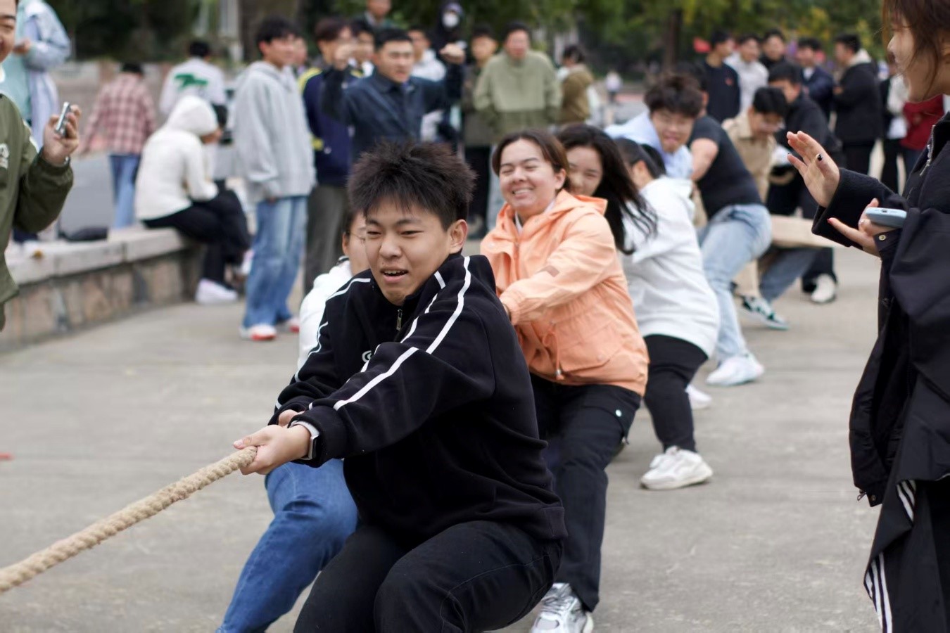 为响应“爱体育,兴科大”校园体育文化号召,丰富校园文化生活,展现班集体卓越风采,增强班级凝聚力,化学院团委于2025年10月19日在小五四广场组织2025级学生开展了一场热血沸腾的拔河比赛。本次比赛以班级为单位进行角逐,14支队伍踊跃参赛,每支队伍由5名男生和4名女生组成,通过抽签分组确定比赛顺序。