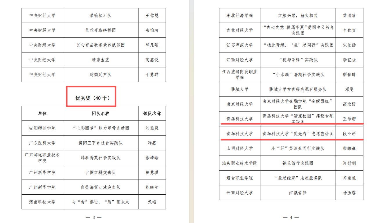 近日,中财青年网(中央财经学院团委)公布了财经报国青年力行”2025年暑期社会实践微视频大赛获奖情况。生物工程学院团委“荧光海”志愿宣讲团和“清廉校园”建设专项实践团获评优秀奖。