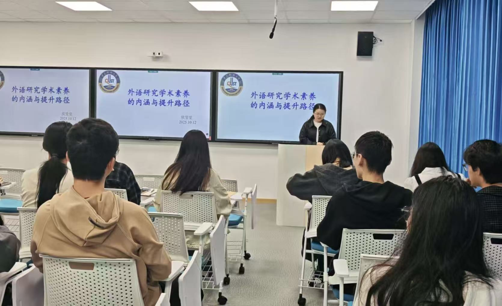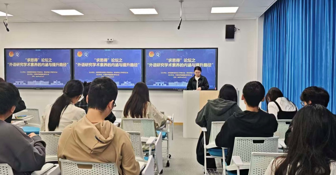 为进一步提升研究生的学术素养与科研能力,拓宽外语学科研究视野,近日,外国语学院研究生会举办“外语研究学术素养的内涵与提升路径”求思得学术论坛。本次求思得论坛由翻译学博士侯莹莹老师主讲,学院60余名学生参加论坛。