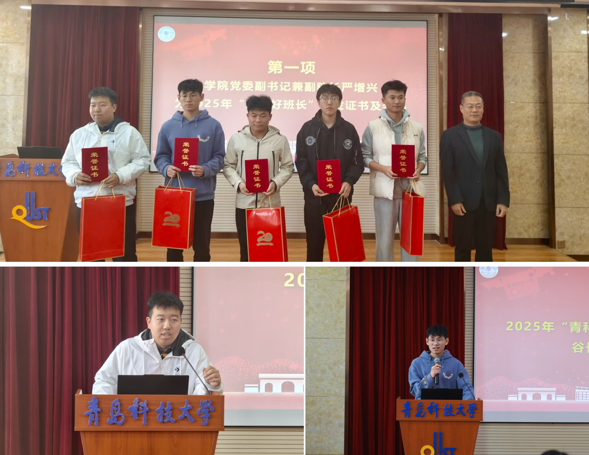 为表彰优秀学生干部在班级工作中的卓越表现,严增兴为荣获2025年“信院好班长”的同学颁发了荣誉证书及奖品。随后,两位班长代表孙洪基和谷长磊先后发言分享经验感悟。他们围绕“如何有效管理班级”这一主题,结合自身工作实际,分享了独到的见解与宝贵经验,其生动的案例和切实的心得引发了在场同学的深入思考。