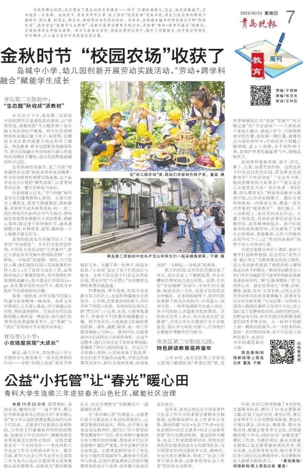 从防范校园欺凌到网络安全教育,从自我防护技巧到食品安全科普,这些家庭关注的热点议题,在志愿者们的巧妙设计中化为孩子们喜爱的互动体验。法学院青年志愿者们用创意与热情,为孩子们打造了一堂堂生动有趣的成长教育课。近年来,志愿者们通过陪伴式辅导与专业化服务,赋能社区建设与基层治理,相关事迹获《青岛晚报》报道。