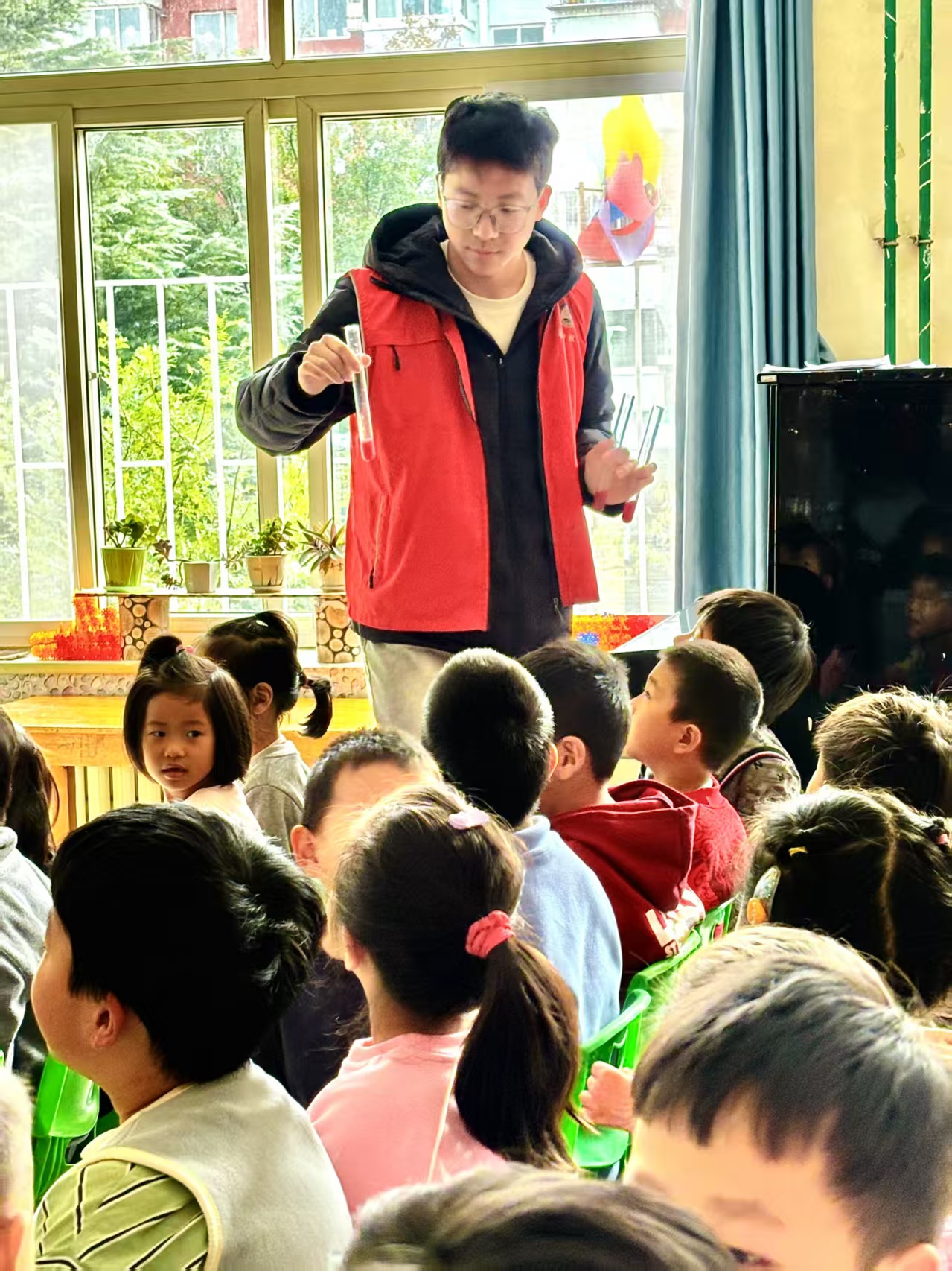 活动前期,“心视野”志愿服务队精心筹备:对接鲁阳路社区确定场地与人员,备好实验及手工材料并调试石榴汁实验流程,还结合心理知识设计儿童引导环节,为科学探索与孝亲教育的融合及活动顺利开展筑牢基础。