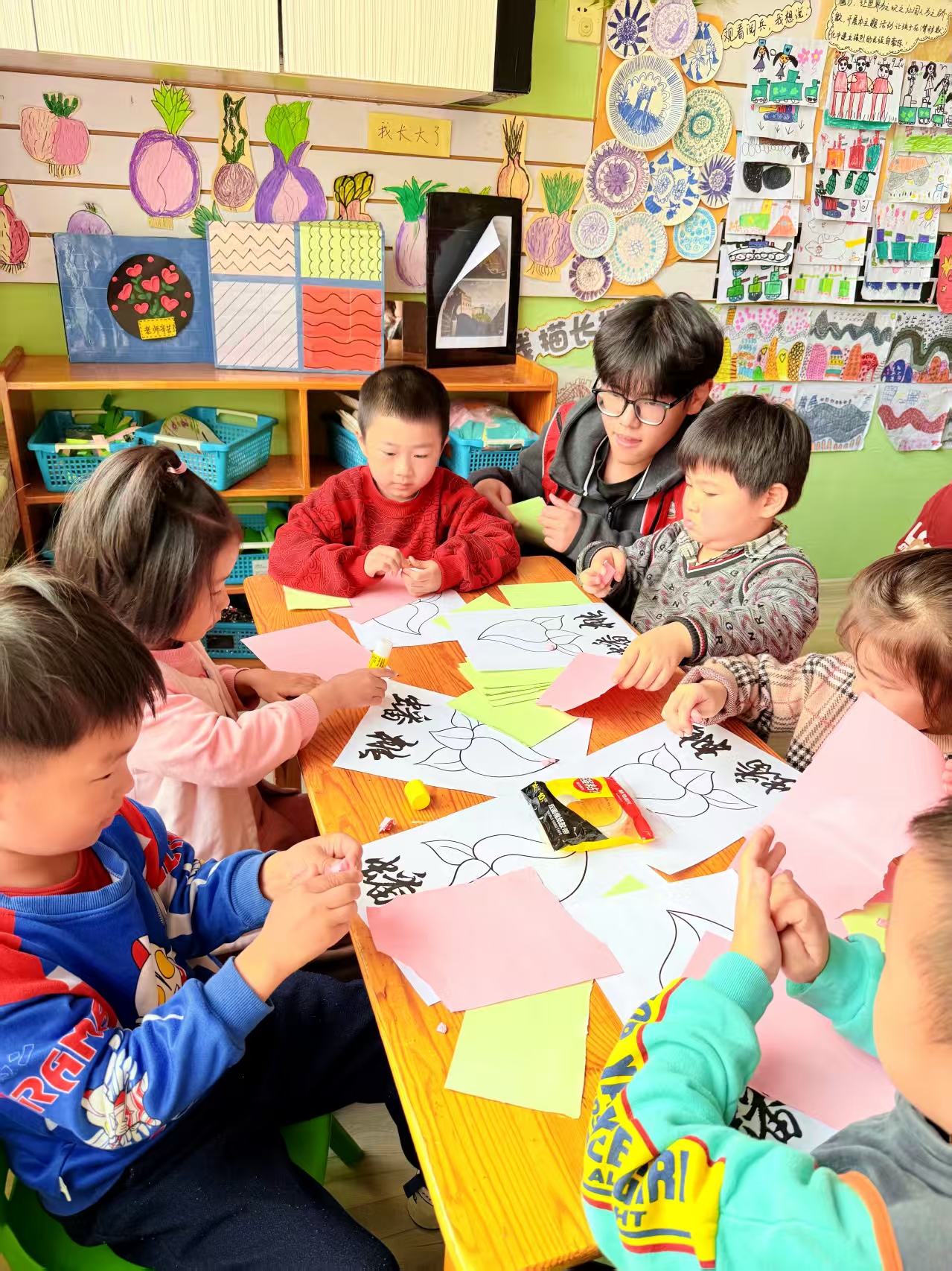 活动现场,志愿者们先以趣味石榴汁变色实验开场,将汁液与酸碱物质混合使其“换装”,再用童趣语言讲解酸碱原理,把抽象知识变成探索游戏,在孩子们心中播下“探索未知、乐于思考”的科学种子。随后,手工创作温情开启,志愿者带着寿桃手作材料讲解重阳传统寓意,孩子们通过揉、捏、粘赋予寿桃生命力,完成后捧着作品向社区长辈道贺,让敬老爱老的暖流在重阳佳节里悠悠蔓延。