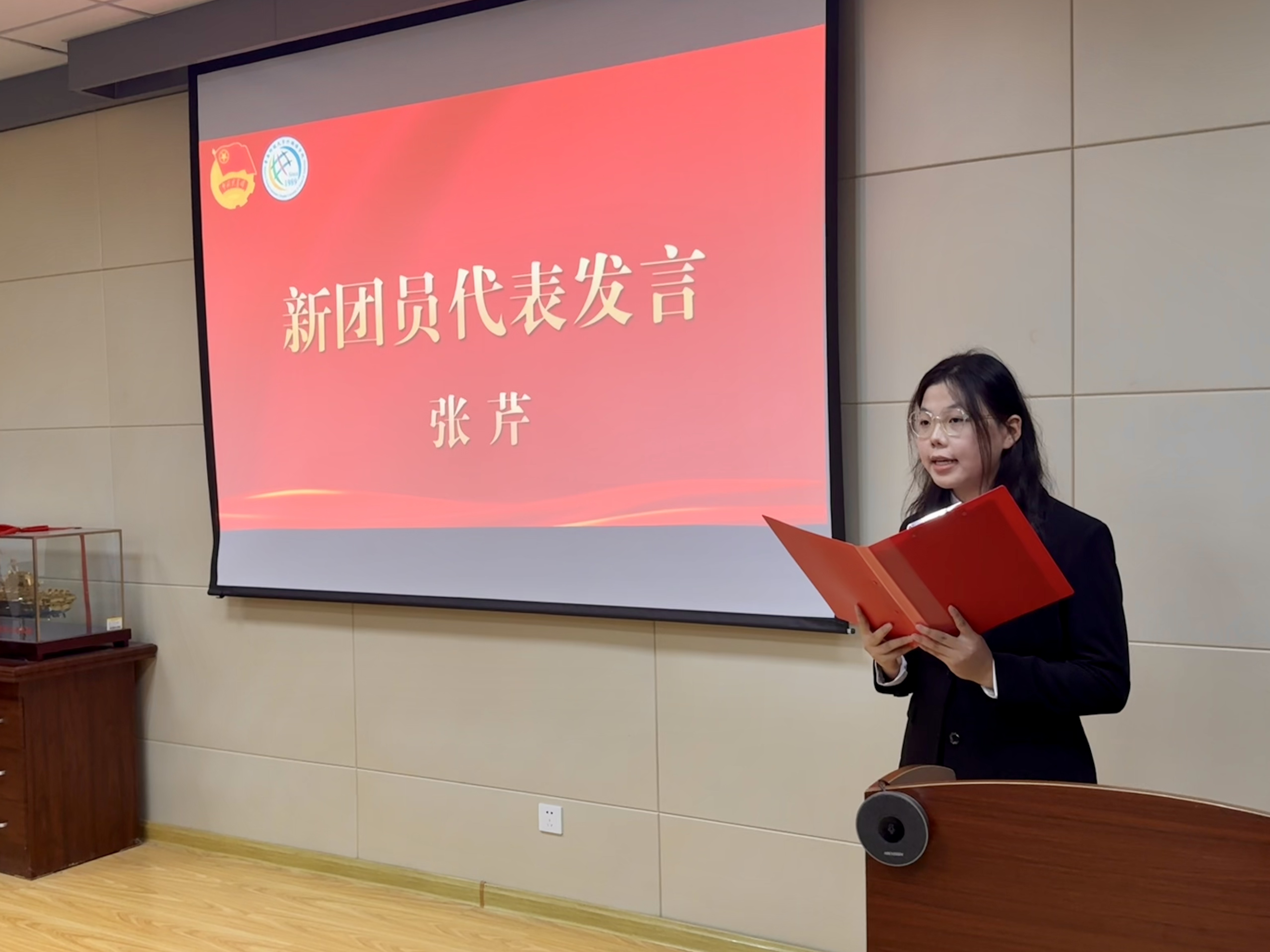 入团仪式上,王玉凯宣读新入团团员名单,并逐一为新团员颁发团员证、佩戴团徽。张芹作为新团员代表发言,分享了对共青团组织的向往与热爱,表达了坚定理想信念、矢志拼搏奋斗的决心。优秀团员代表傅云帆结合自身经历分享经验,鼓励新团员积极参与团组织活动、在实践中提升自我。随后,张芹带领全体新团员举起右拳庄严宣誓。