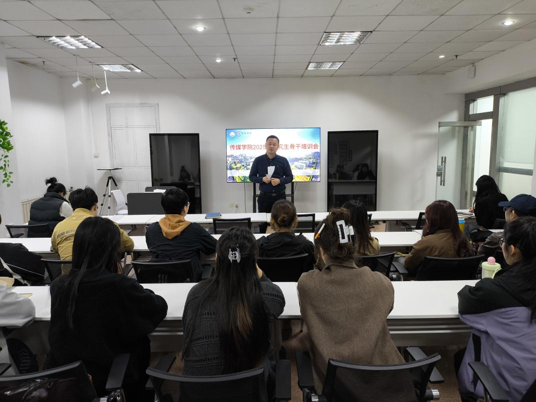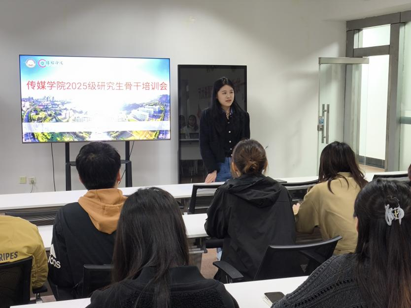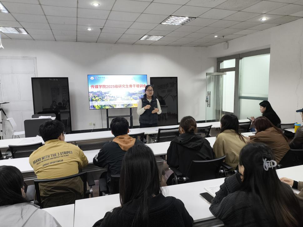 为进一步加强学生骨干队伍建设,提升研究生骨干的综合能力与素养,10月29日晚,传媒学院2025级研究生骨干培训会在“一站式”学生社区举行。学院党委副书记兼副院长刘海波、团委副书记兼学工办副主任金莹莹、24级出版专业团支书刘晓阳以及2025级全体研究生班委参加会议。