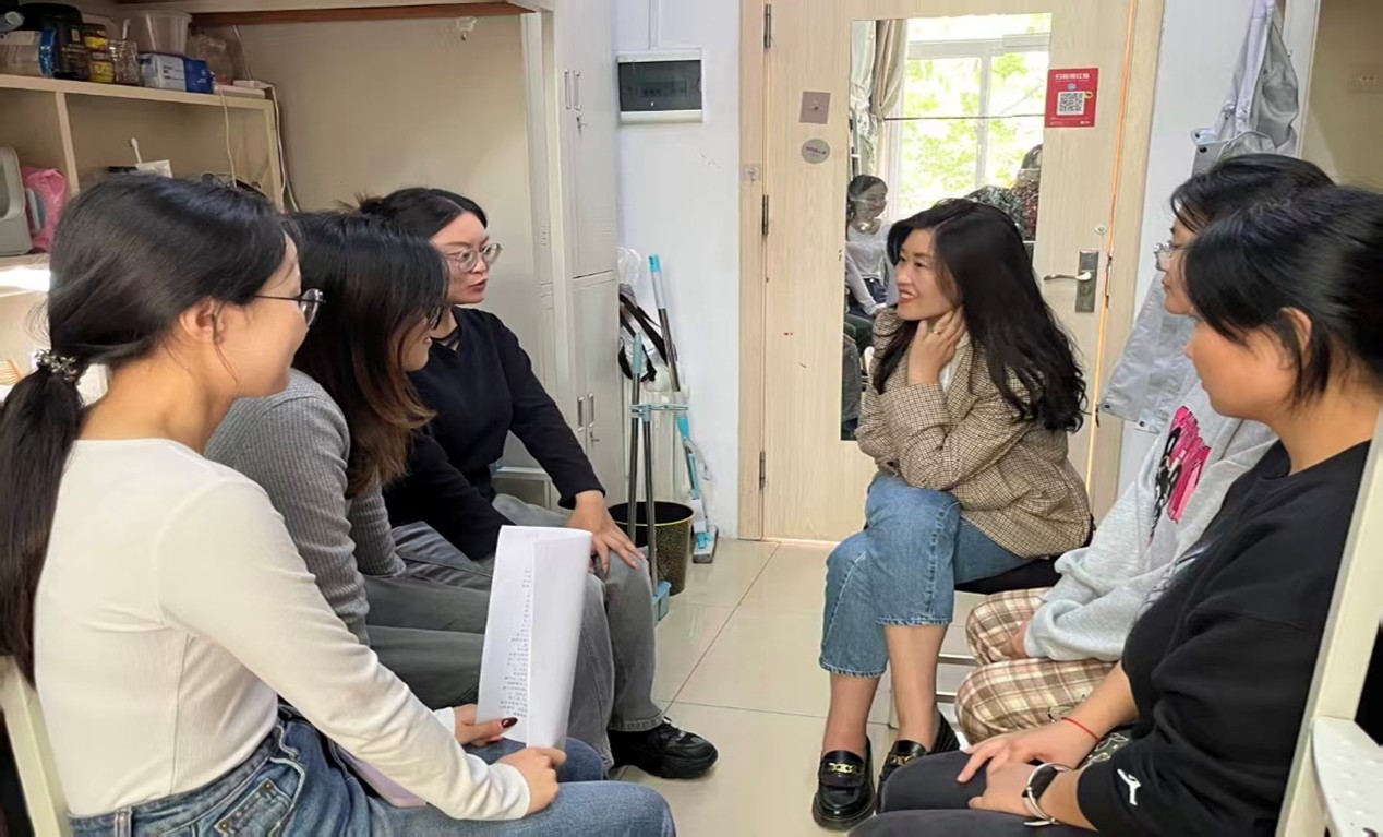 第一板块“我的情绪”宿舍座谈会由各宿舍长主持,围绕情绪认知与心理调适开展交流。程丽老师聚焦科研学习与日常生活中的情绪调适问题,倾听研二同学在实验推进与论文写作中遇到的困惑,结合自身经验提供应对思路与调节方法,切实帮助学生缓解心理压力;满馨悦老师则重点关注新生适应问题,针对同学们在科研起步阶段遇到的共性问题,分享时间规划、导师沟通、情绪调节等实用技巧,助力新生顺利融入研究生生活。