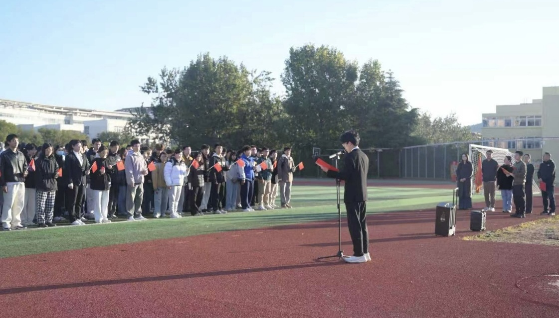 为进一步弘扬爱国主义精神,激发青年学子的时代责任感, 10月27日早上,中德科技学院团委在崂山校区南苑操场举行“铭记历史,勇担使命”升旗仪式。学院党委副书记兼副院长张大伟、团委书记李怡然、学院团干部、2025级秋季入团积极分子及学生代表等500余人参加仪式。