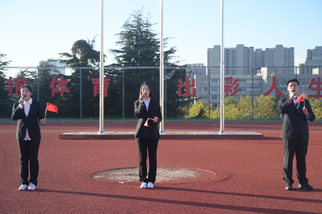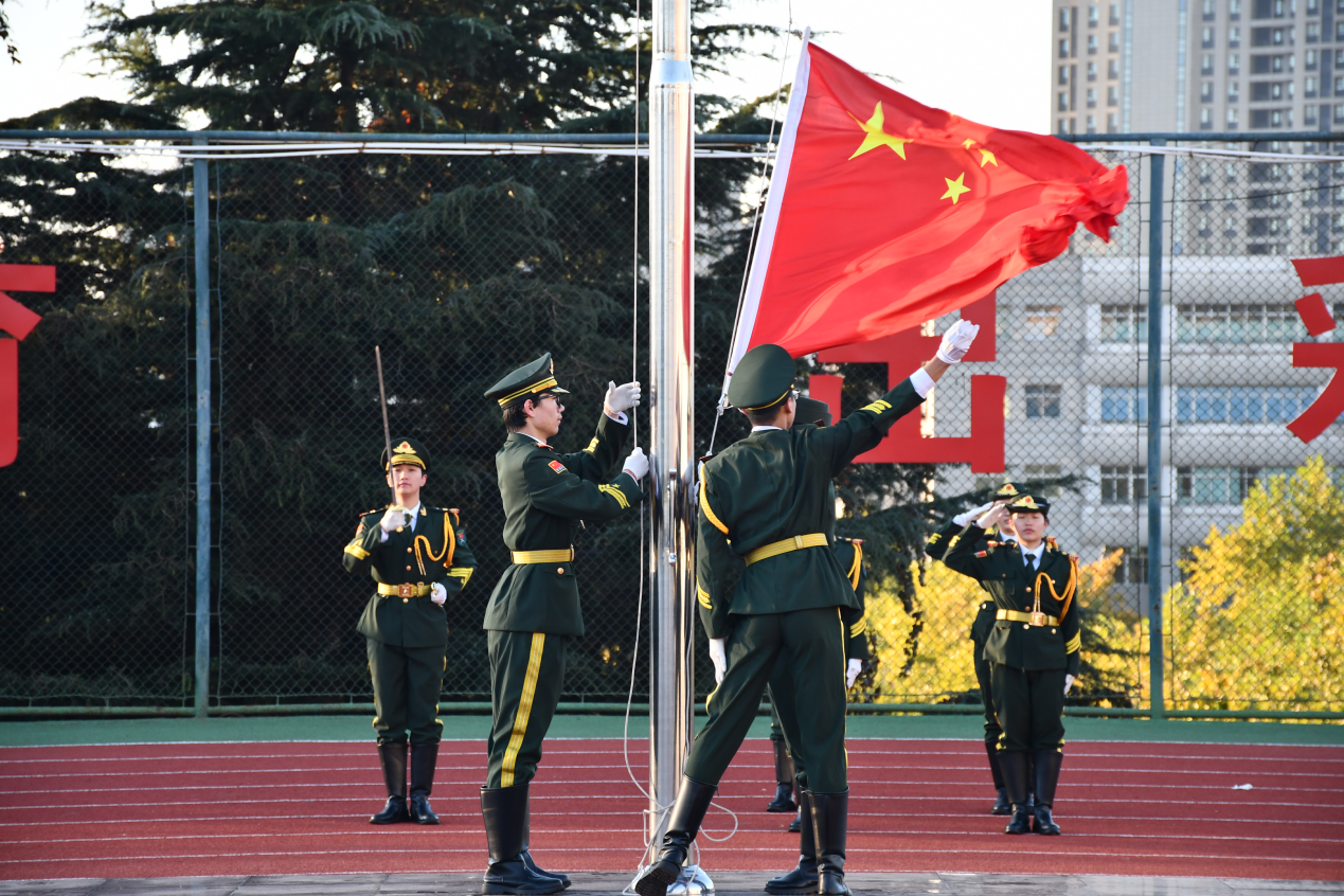 晨光中,国旗护卫队迈着铿锵步伐将国旗护送至升旗台。当《义勇军进行曲》响起,全场师生肃立行注目礼,五星红旗缓缓升起,点燃了大家的爱国热情。