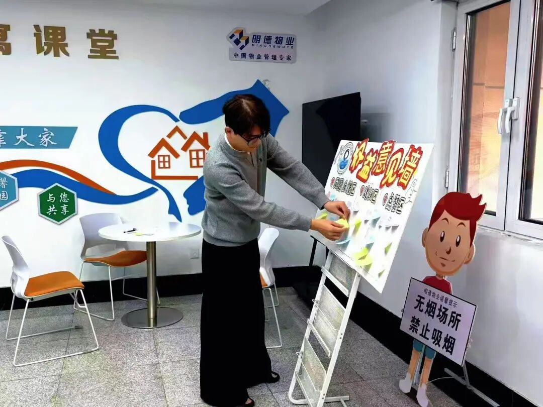 活动期间,宿舍楼展板前气氛热烈。同学们积极参与,踊跃留言,从把思政教育与专业特色相结合的建议,到增加“实用型”选修课的需求,再到宿舍公共洗衣机维护的反馈,一条条真诚的留言凝聚着同学们对美好校园生活的共同期待。研究生会志愿者每日定期收集整理留言,建立权益问题台账,并针对普遍性问题进行回应,以高效务实的行动保障同学们的居住权益与生活品质。