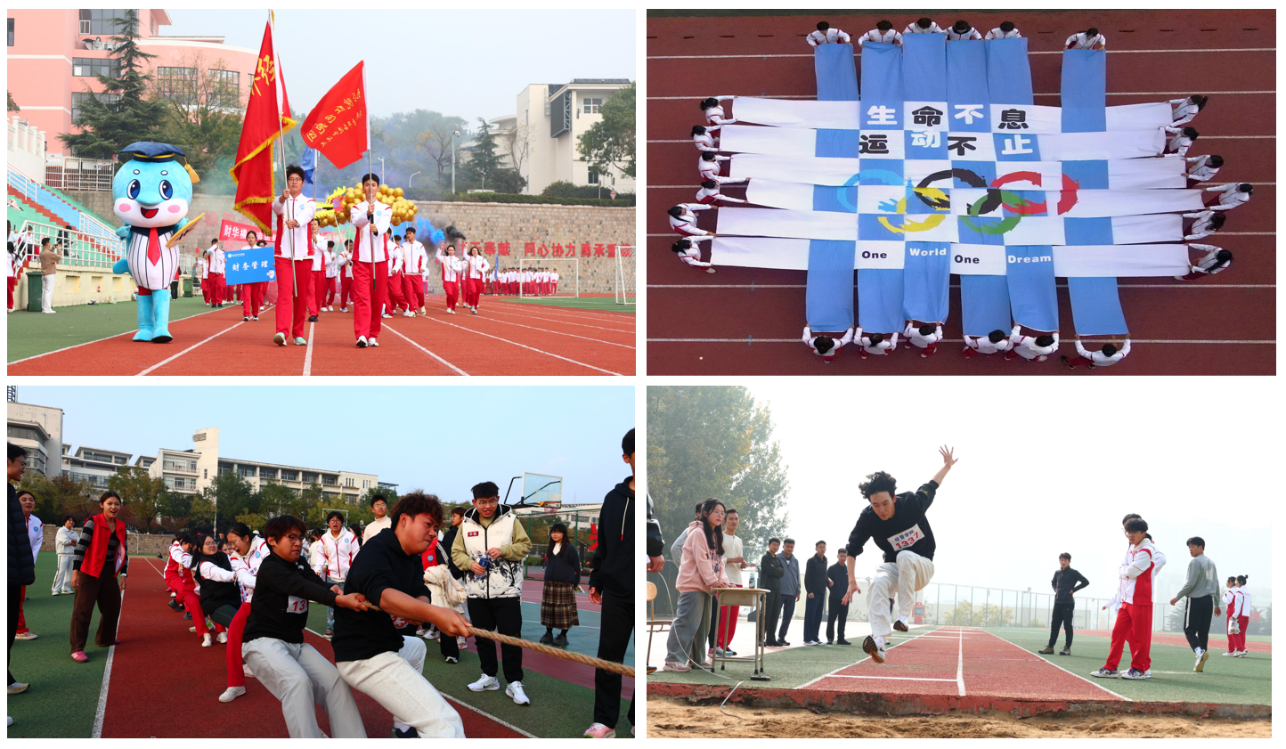 随着鸣笛响起,运动会正式开始。跑道上,学子冲刺如电,沙坑前,健儿纵身一跃,铅球区,铅球掷出优美弧线。趣味活动中展现同学间的互助合作,拔河的胜负藏着经管学子的同心协力。在这场运动会中,运动员用汗水彰显着青春的底色,观众们的阵阵呼声,激励着运动员愈发拼搏。这正是经管学院团结一心,众志成城的体现。