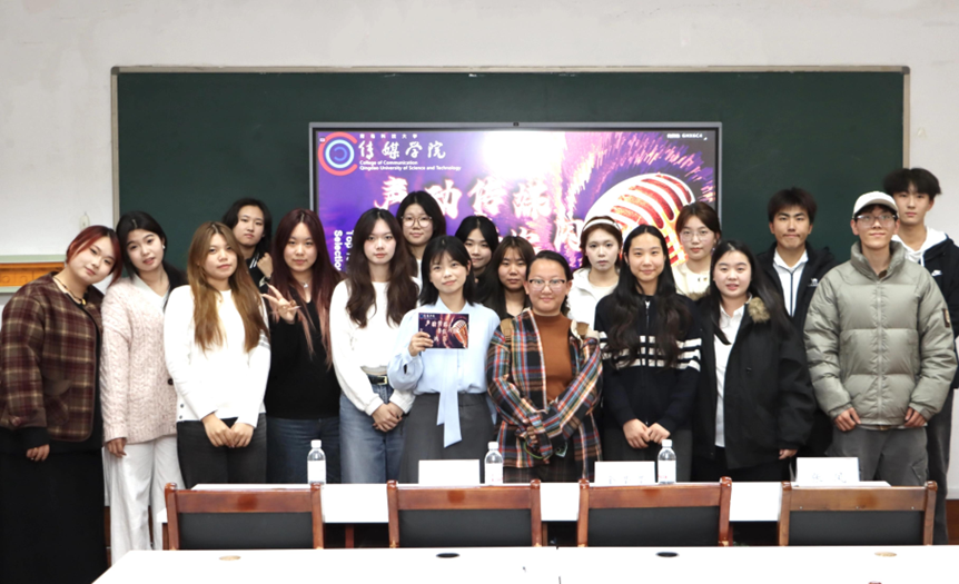 10月28日晚,决赛在310会议室举行,传媒学院团委副书记兼学工办副主任金莹莹,辅导员赵岩、张凤参加活动。15位选手依次登台角逐,风格迥异各展所长:有的以清澈民谣诉说青春情愫,有的用高亢流行旋律点燃现场氛围,部分选手还带来原创或改编作品,将传媒学子的创意与思考融入旋律之中。