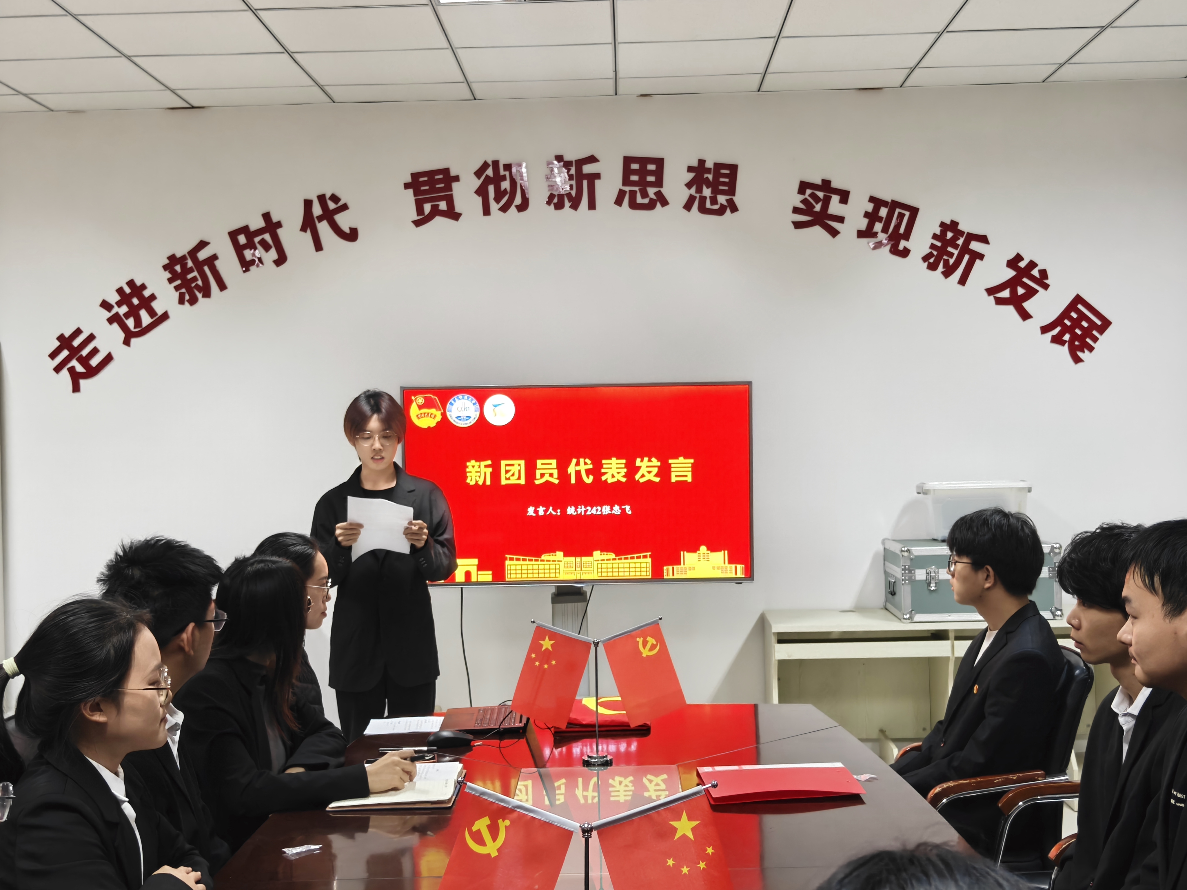 学院辅导员刘敏宣读了新团员名单并为新团员佩戴团徽、颁发团员证,全体新团员在统计231团支部刘灵梅的带领下庄严宣誓。新团员代表、统计242团支部张忠飞发言,表示将以入团为新起点,牢记入团誓言,在学习中刻苦钻研,在实践中锤炼品格,不辜负组织的信任与期望。