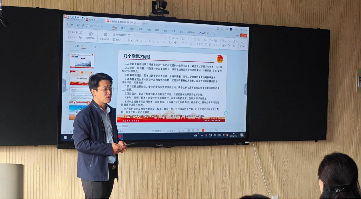 为助力师生精准把握科创赛事核心逻辑,提升参赛项目质量与竞争力,11月11日上午,经管学院团委在404会议室举办科创比赛培训交流会。本次活动特邀团省委社会联络部部长王云龙主讲,学院科创比赛骨干教师齐聚一堂,共同交流分享备赛心得。