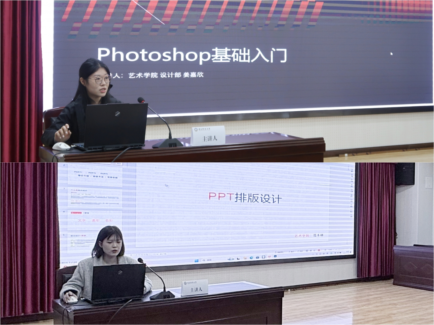 在技能培训环节,姜嘉欣讲解了PS软件基础操作与信息可视化技巧,强调设计过程中实用性与可读性的统一。范木林介绍了即梦AI图像生成工具,并现场演示了“描述—选模型—生成”的基本操作流程,助力同学们更好地掌握AI制图技能,提升视觉设计与创意表达能力。