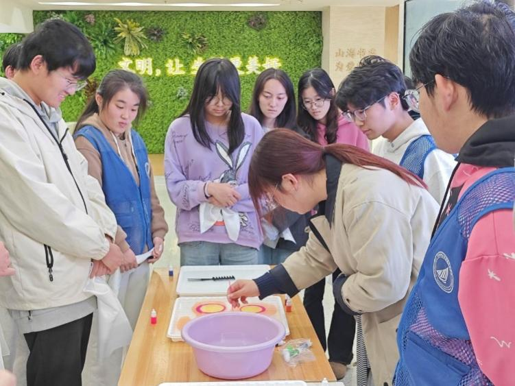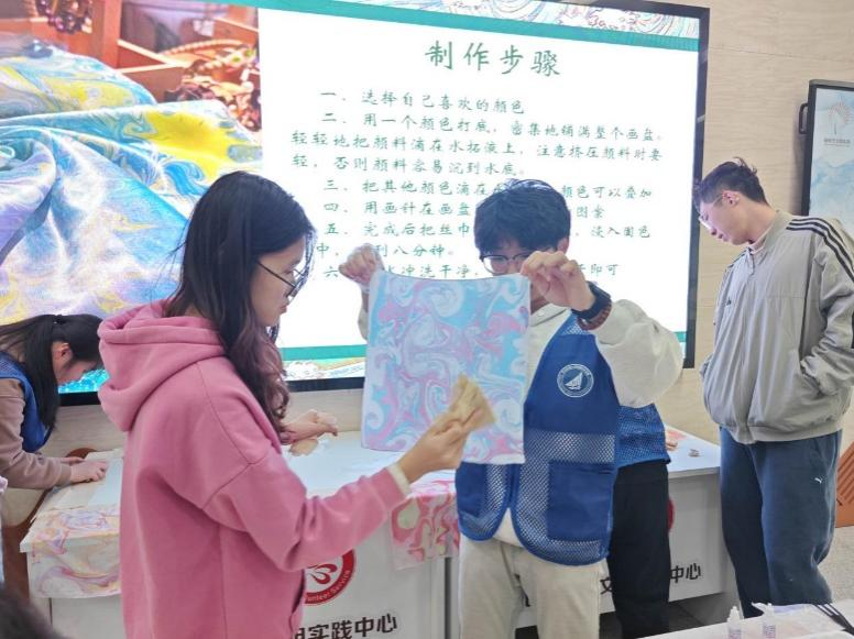 数据科学学院团委“小星云”志愿服务团队走进崂山实践中心体验 “水拓丝巾”技艺