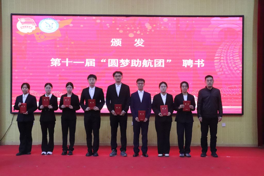 臧传永为第十一届“圆梦助航团”成员颁发聘书。