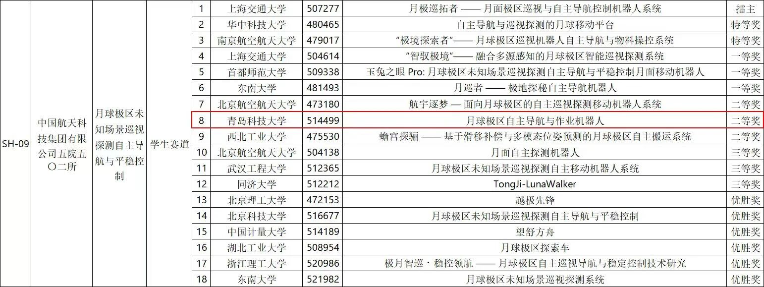 自动化与电子工程学院的项目《月球极区自主导航与作业机器人》在2025年度中国青年科技创新“揭榜挂帅”擂台赛“人工智能领域”主擂台赛中,从众多一流高校中突出重围,最终以全国第八名的优异成绩斩获国家二等奖。