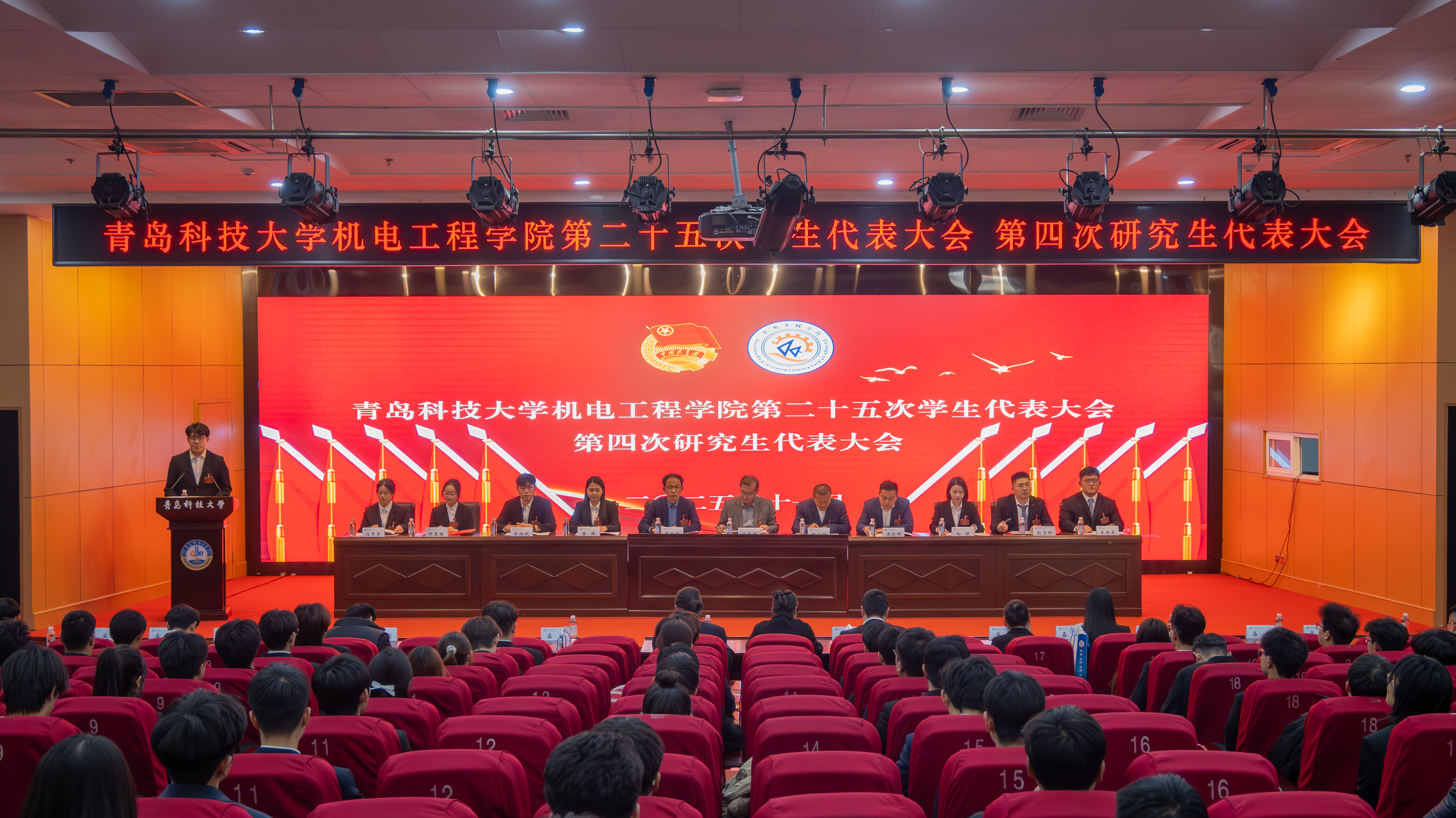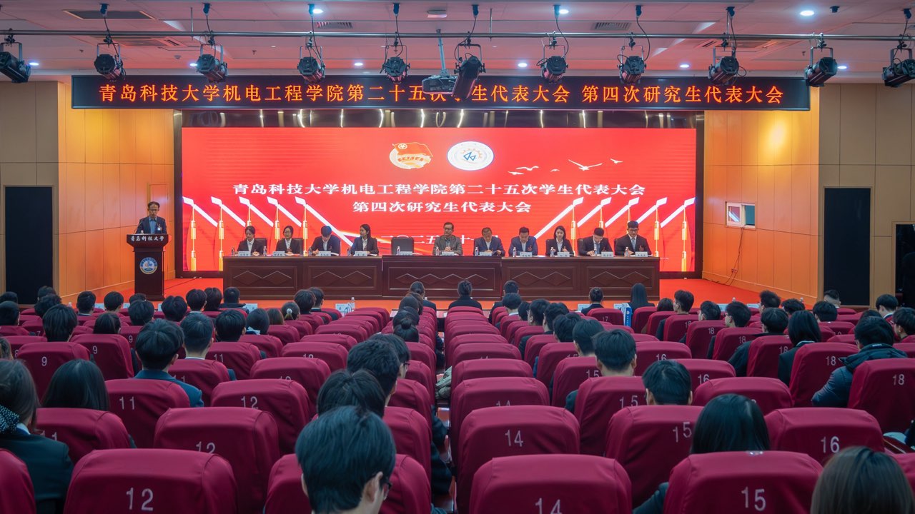 11月18日,MILE米乐集团机电工程学院第二十五次学生代表大会、第四次研究生代表大会在崂山校区英科报告厅召开。机电工程学院党委书记任允晓、党委副书记杨小明、学院团委书记逄柏鹏、学院全体团干部、校学生会和研究生会代表、兄弟学院学生会和研究生会代表和145名代表参加会议。