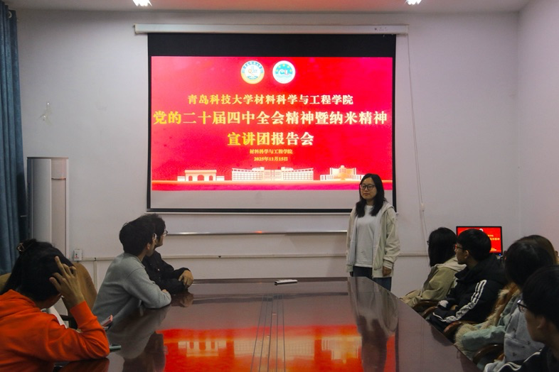 为贯彻学习党的二十届四中全会精神、弘扬纳米精神,激发材料学子勇于探索、敢于创新的开拓精神,材料学院于11月15日下午举行党的二十届四中全会精神暨纳米精神宣讲团第五期报告会。本次报告会由宣讲团成员张怡清、王露主持宣讲,学院学生代表参加。