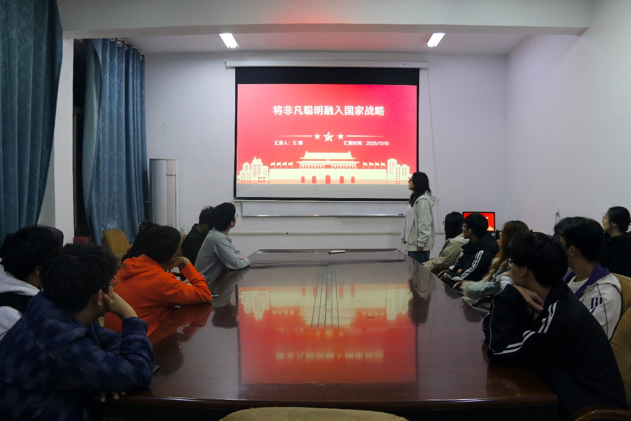 随后,张怡清聚焦“大学生学术与能力提升”展开宣讲。她以全国大学生数学建模竞赛为切入点,系统地介绍了赛事规则、核心内容以及备赛技巧。同时,她着重强调了英语学习的重要性,并建议学生从细读英文文献入手,逐字逐句理解以积累语感和专业知识。在科研实践层面,张怡清结合自身经历,建议从技术任务入手,优先研读领域顶刊综述类文献,明确研究背景、核心方法与关键结论并做好笔记;同时要勤于思考,主动与导师沟通解决困惑。针对“如何平衡学业、科研与社团”这一热门问题,张怡清表示需有侧重地安排事务,确保学业与科研协同推进,并建议学生在大二至大三阶段集中开展科研实践,明确未来目标。