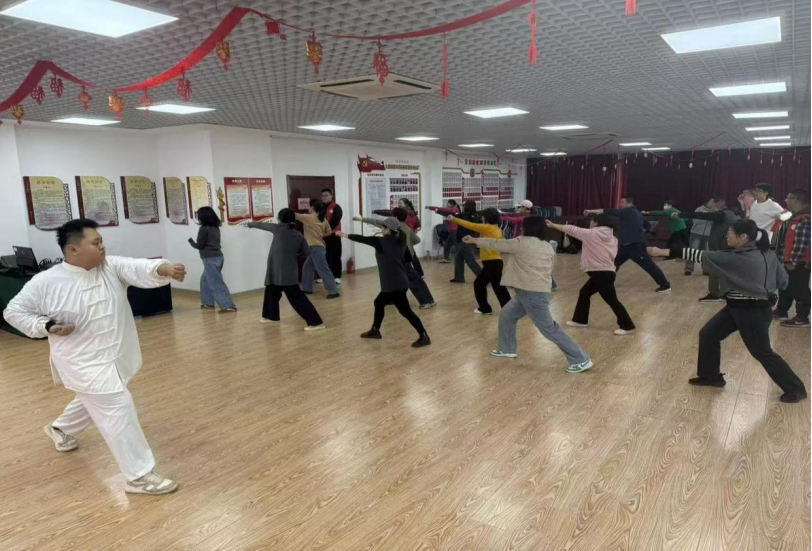 三维模式创新,打造沉浸体验。活动采用“文化讲解+动作教学+健康互动”的创新模式,形成完整的教学闭环。文化讲解环节通过“历史故事+招式解析”双轨叙事,让居民们深入了解螳螂拳自明末清初起源至今的400年传承脉络;动作教学环节采用“镜面示范+手把手矫正”教学法,确保每位参与者都能准确掌握发力要领;健康互动环节创新融入“呼吸导引+经络拍打”配套练习,在“拳起拳落”间实现“气机通畅、筋骨强健”的养生效果,形成“学—练—养”完整闭环。