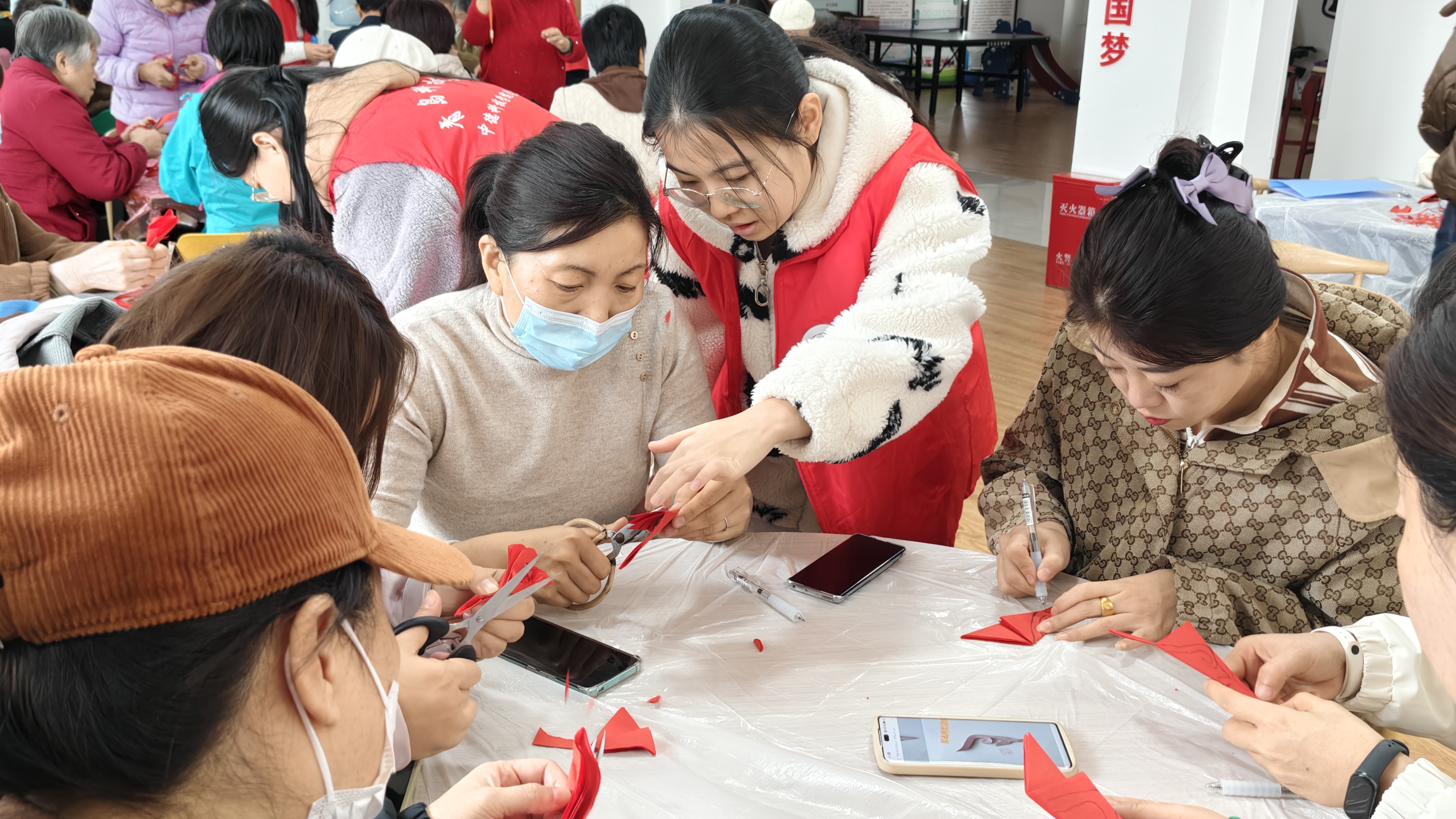 在实践创作阶段,志愿者创新采用“一对一、手把手”的精准教学模式。根据老年人的握剪习惯、视力状况等个体差异,量身定制执剪姿势矫正、图案勾勒技巧等个性化指导方案。针对“如何控制剪刀力度避免纸张破损”“如何处理复杂镂空花纹”等高频问题,通过现场示范、慢动作回放、步骤分解图示等多维度教学方式,确保每位老人都能独立完成专属剪纸作品,在动手实践中深刻感受传统技艺的独特魅力与匠人精神。