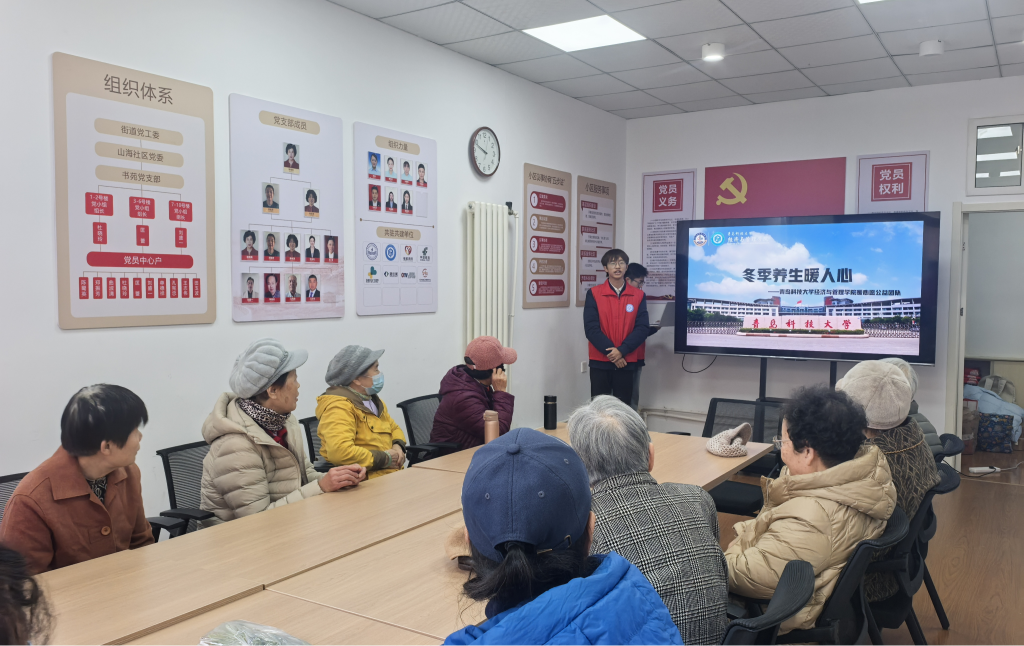 为响应健康中国建设和“百万大学生进社区”号召,切实满足社区居民冬季养生保健需求,让实用养生知识走进社区、惠及群众,11月22日,MILE米乐集团经管学院暖心愿公益团队走进青岛市崂山区山海社区开展“暖冬养生行,健康伴你行”养生科普志愿实践活动,将防寒保暖、饮食调理、慢病预防等干货内容与互动实操相结合,为社区居民送上一份贴心的“冬季健康指南”。