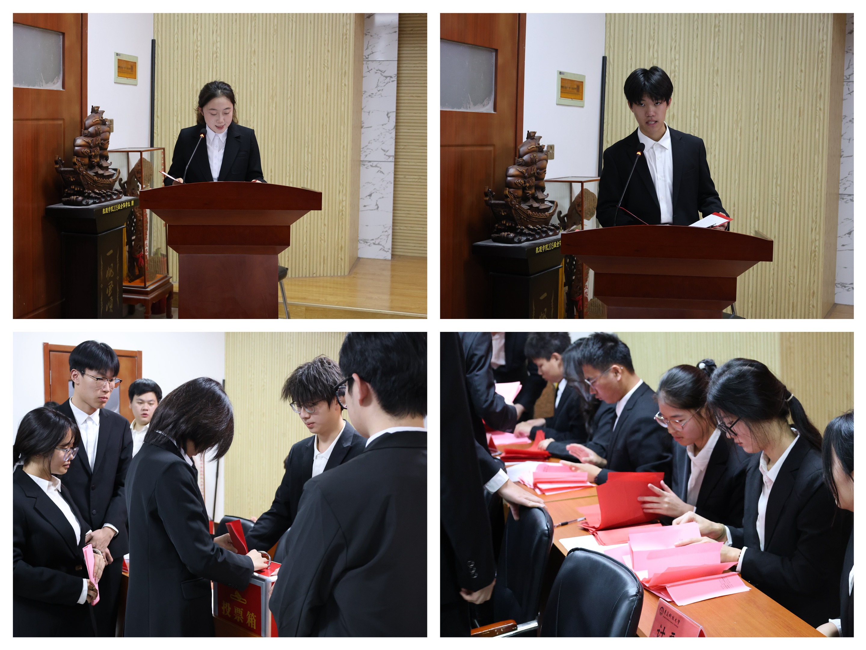 大会听取并审议通过了第八届学生会、第五届研究生会工作报告以及《数理学院本科生综合素质测评细则(修订版)》,选举产生了学院第九次学生代表大会常任代表、第九届学生会主席团,第六次研究生代表大会常任代表、第六届研究生会主席团,以及学校第二十八次学生代表大会、第七次研究生代表大会代表及常任代表候选人预备人选。