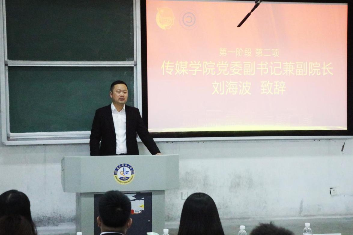 会议在庄严的国歌声中拉开帷幕。刘海波在致辞中指出,传媒学院高度重视学生骨干和青年人才培养,积极搭建青年成长成才的平台。他对参训学员提出三点希望,一是坚定理想信念,争做中国特色社会主义道路的信仰者。要深入学习贯彻习近平新时代中国特色社会主义思想,坚持守正创新,真抓实干,当先锋、作表率,在校内外树好“青科传媒”品牌,弘扬青科传媒人的精气神,擦亮科大橡胶魂的底色。二是锤炼过硬本领,争做担当民族复兴大任的先行者。要沉得下身子、耐得住性子,坚持知识学习要深,实践学习要精,夯实马克思主义理论功底,在青春的赛道上跑出当代青年的最好成绩。三是勤学善思笃行,争做为中国式现代化挺膺担当的践行者。要积极参加各项学科竞赛、志愿服务等品牌活动,在攻坚克难中实现能力与精神的双重淬炼,为建设“特色鲜明、走在前列”的高水平大学团结奋斗。