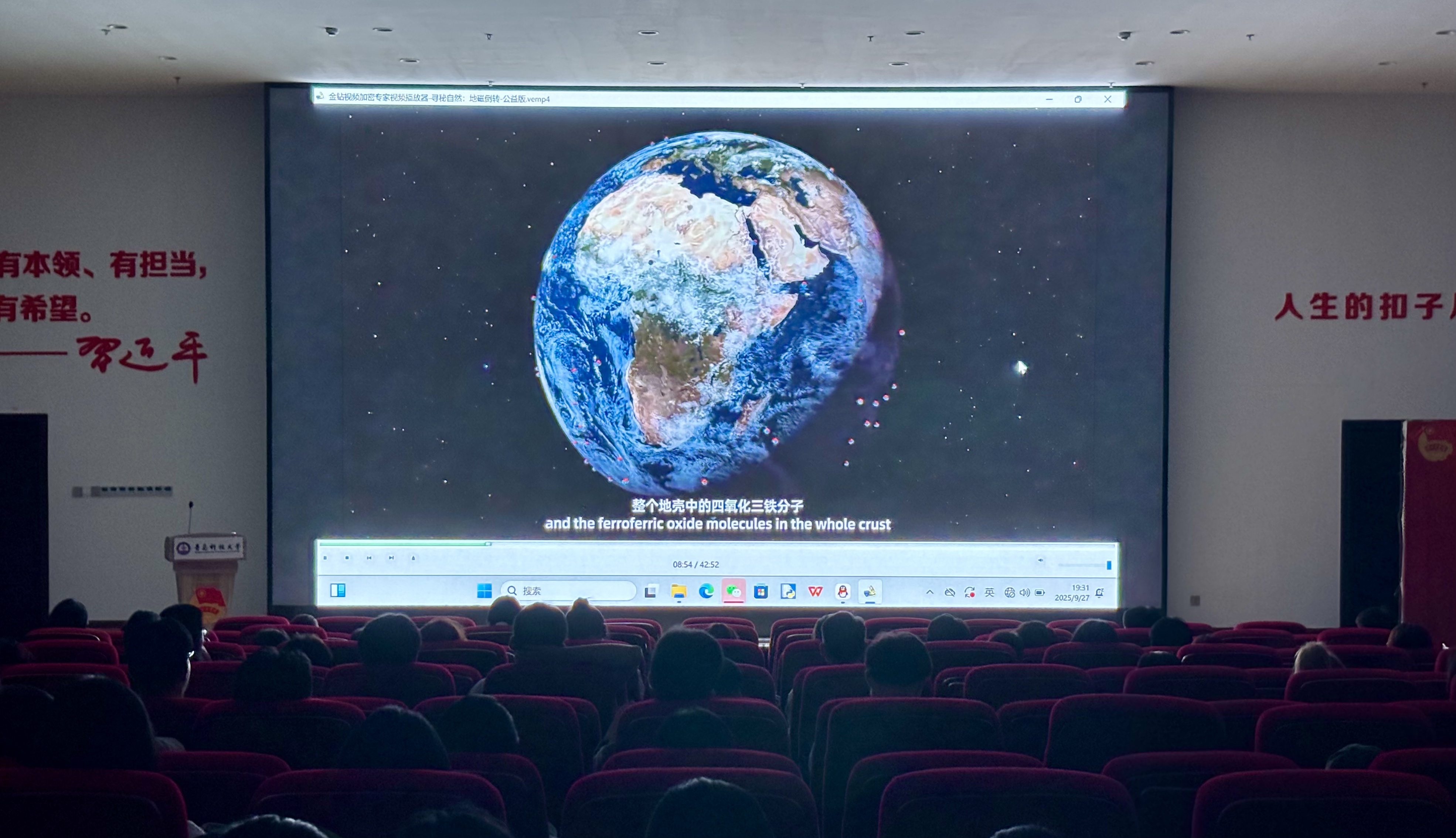 影片《寻秘自然:地球往事》入选国家出版基金项目,获得国家电影局电影精品专项资金资助,入围第三届华语纪录电影大会科学自然类推荐作品,被《“十四五”文化发展规划》重大文化工程项目“国家影像典藏工程”永久收藏。该片聚焦“探秘寒武纪”与“地磁倒转”两大科学领域,通过细腻镜头真实还原我国科研工作者深入地质现场勘察岩层、在实验室推演古生物演化数据、面对瓶颈严谨论证突破的奋斗场景,传递求真务实、开拓进取的科学家精神。影片播放前,科普班级统计241班翟若孜向观影师生全面介绍了科普班级自成立以来开展的各类科普实践活动,重点总结暑期“两弹一星”精神宣讲成效并展望未来。