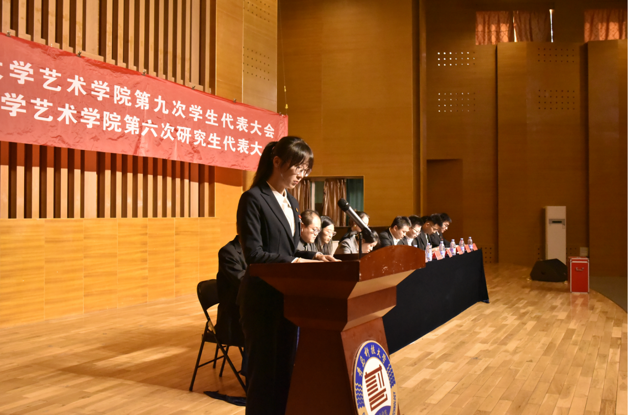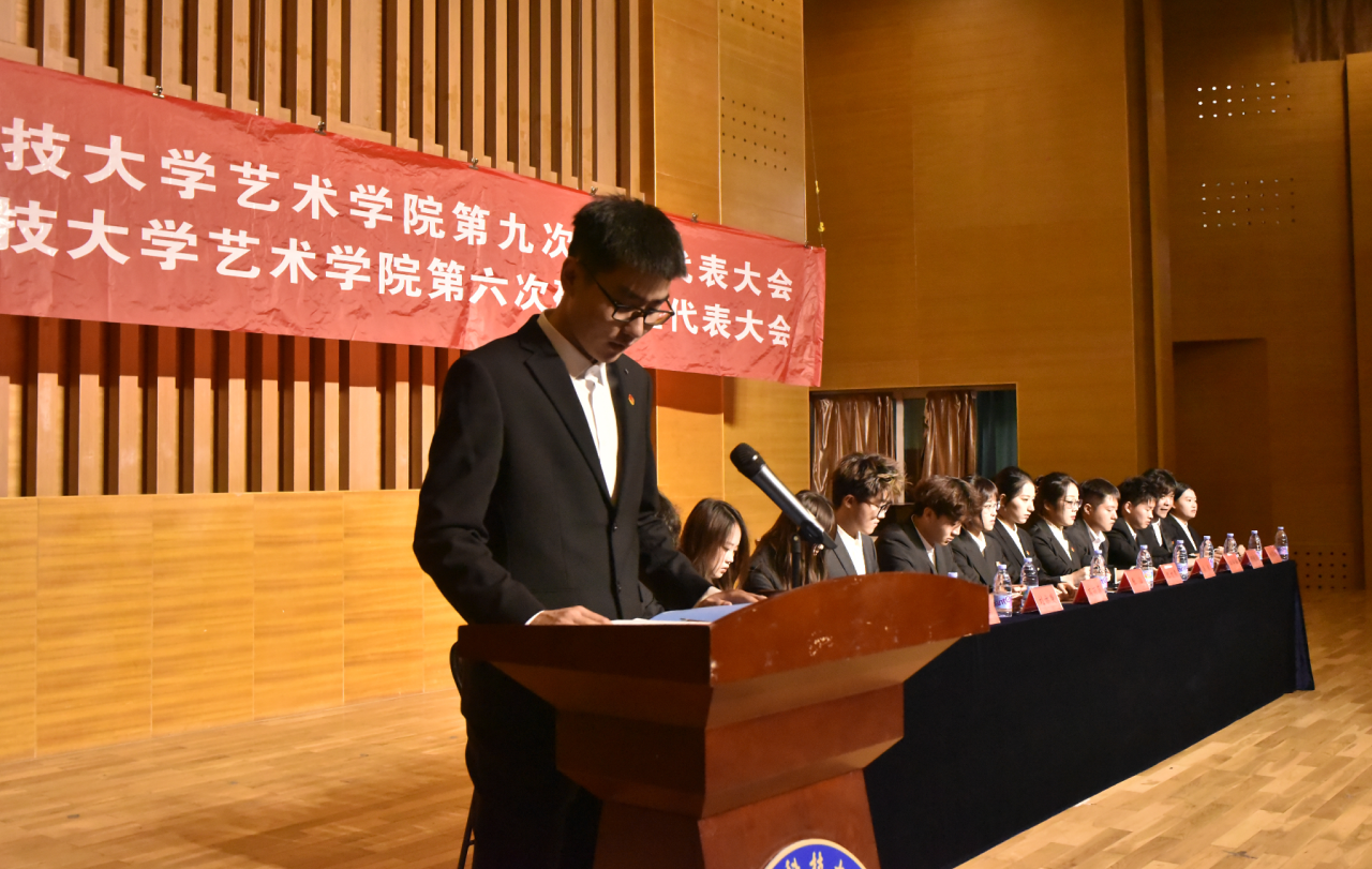 11月25日,艺术学院第九次学生代表大会、第六次研究生代表大会于艺术中心音乐厅顺利召开。学院党委副书记兼副院长丁一宁、团委书记颜枫、全体专职团干部、校学生会代表、各兄弟学院代表及艺术全体学生代表、研究生代表参加大会。
