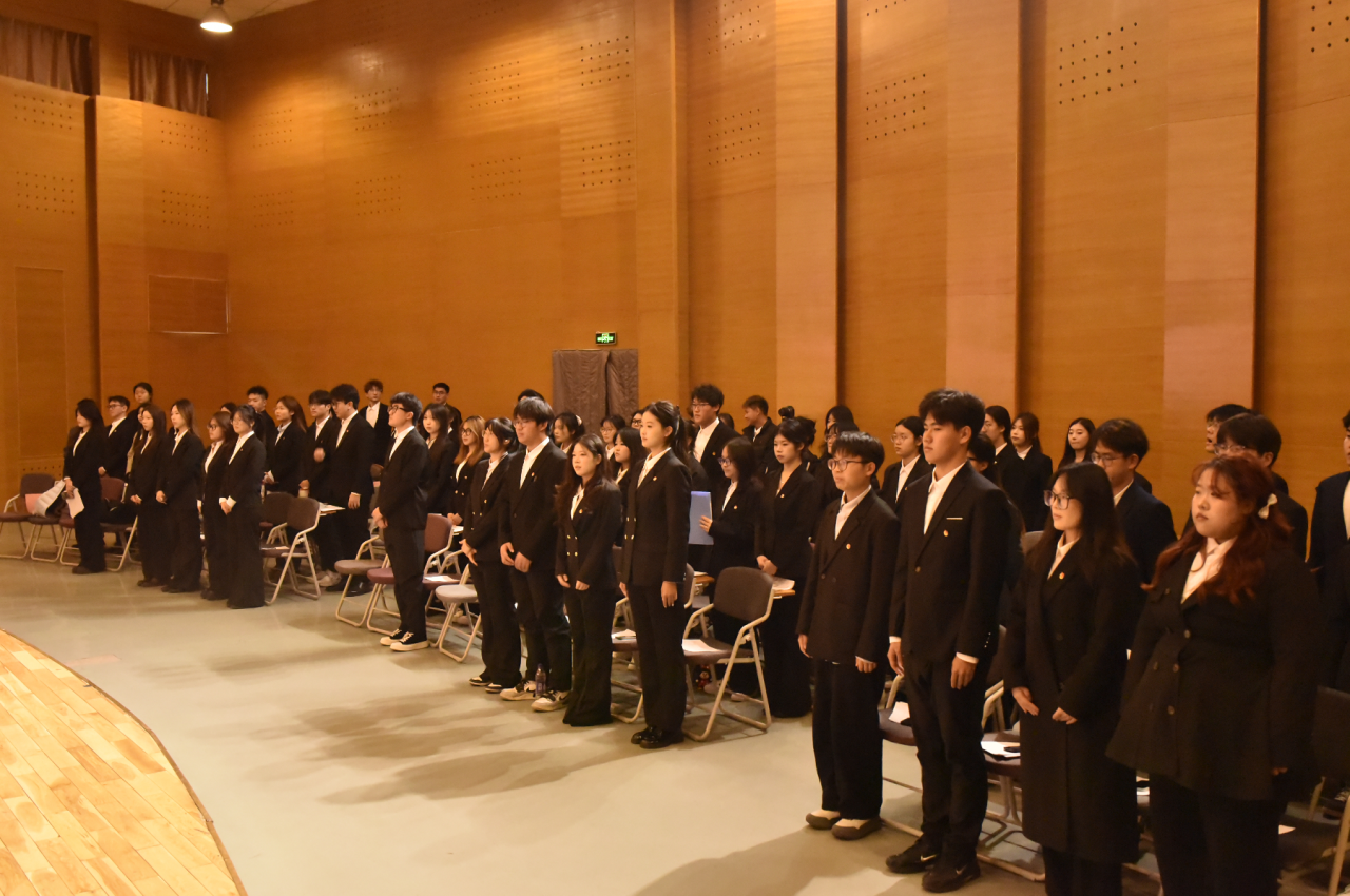 大会在庄严的国歌声中拉开帷幕。会议第一阶段,丁一宁对大会的顺利召开表示祝贺,向支持学生会工作的师生嘉宾表示感谢,对过去一年院学生会、研究生会取得的成绩表示肯定。她对学生会组织提出四点希望:一是要建设学习型学生会,用科学理论武装自己;二是要建设服务型学生会,以服务同学为根本宗旨,不断加强自身思想道德建设;三是要建设创新型学生会,与时俱进,增强创新能力,切实提高业务水平;四是要建设活力型学生会,促进五育并举,推动艺体融合。