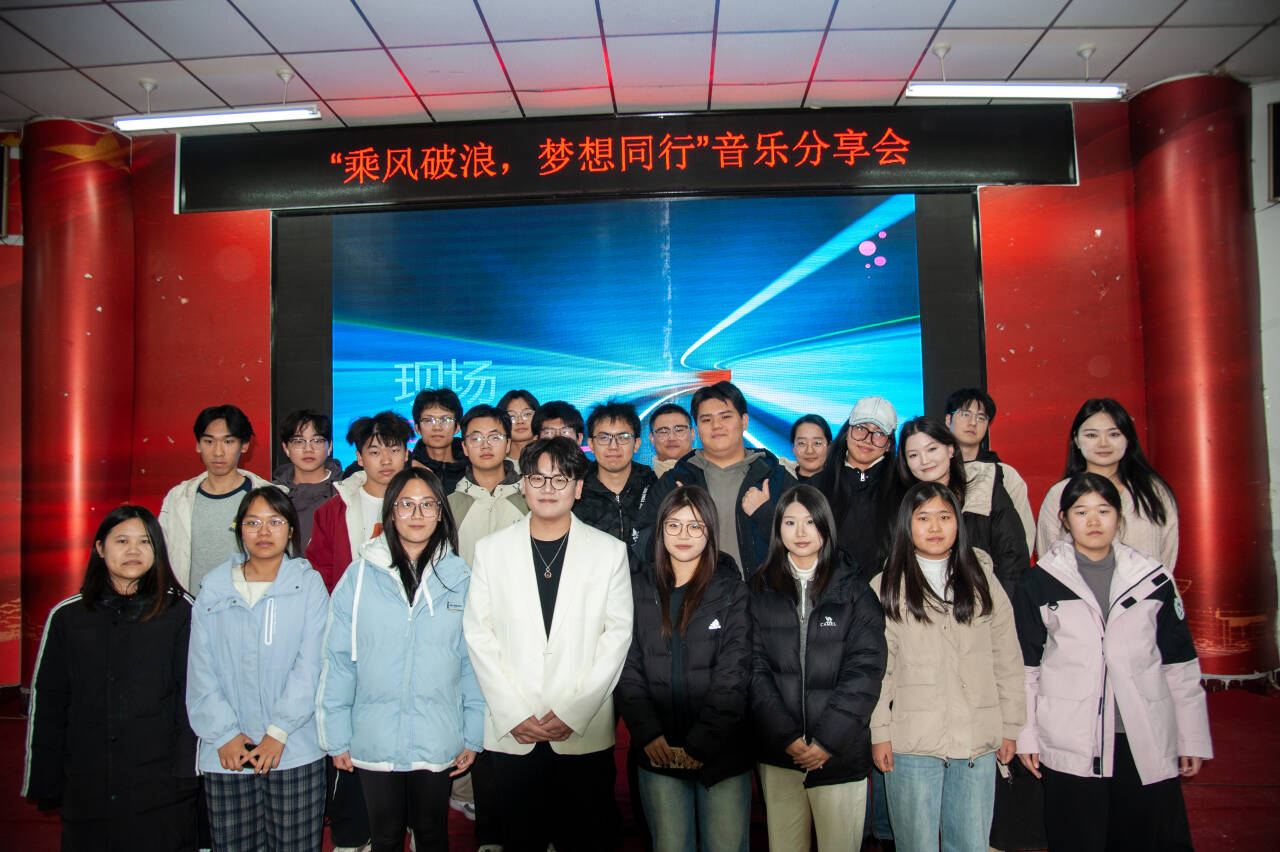 为丰富校园文化生活,发挥杰出校友的榜样引领作用,2025年11月25日,高密校区在通德会堂举办“乘风破浪,梦想同行”音乐分享会。本次活动特邀我校优秀校友、音乐人李宗锦(松紧先生)担任嘉宾,师生代表百余人齐聚现场,共同聆听成长故事、交流行业见解、感受音乐魅力。