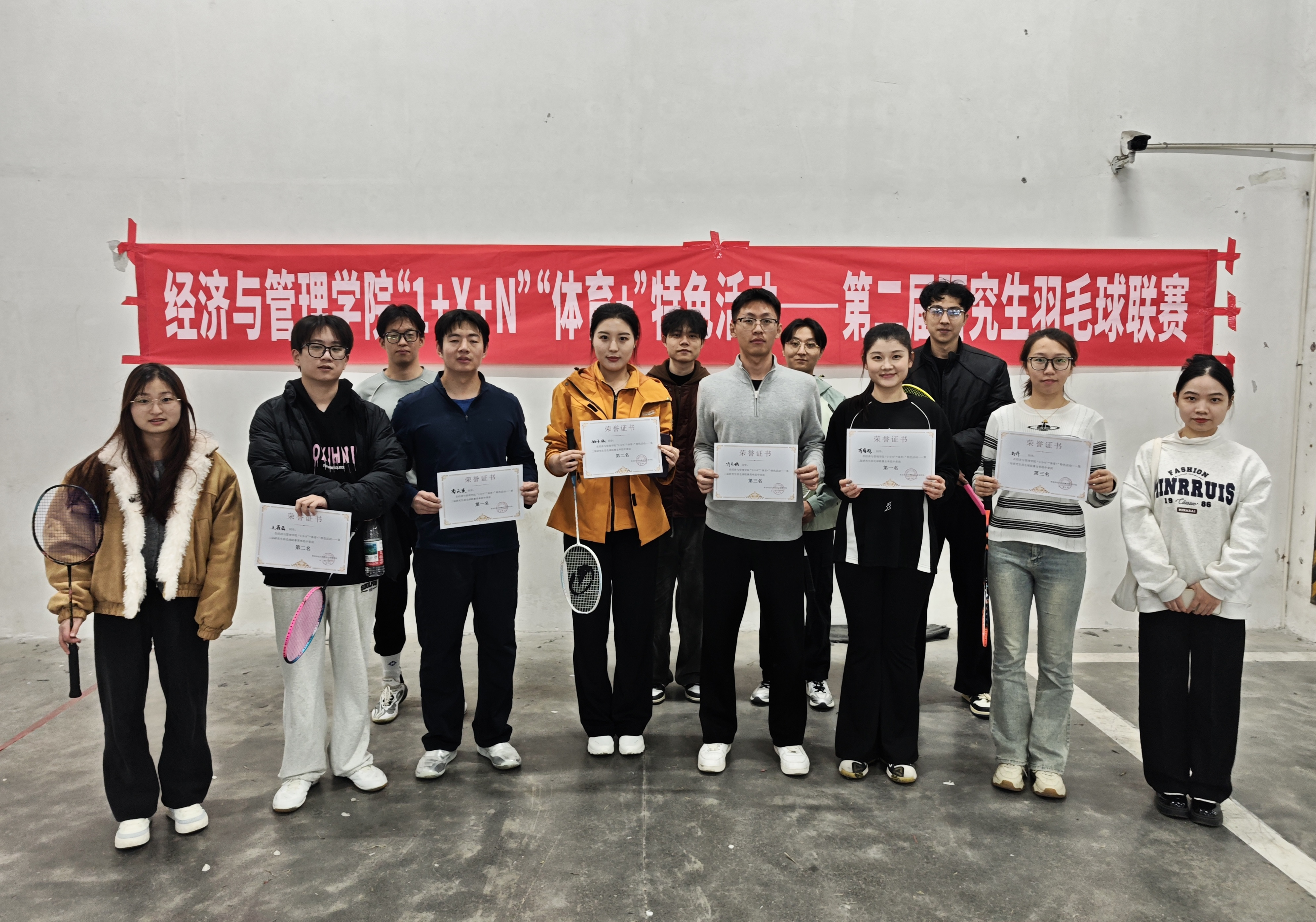11月28日下午,经济与管理学院“1+X+N”“体育+”特色活动——第二届“研羽杯”研究生羽毛球赛圆满落幕。本次赛事由学院研究生会主办,各年级研究生踊跃参与,以活力与拼搏诠释“爱体育·兴科大”的校园风尚,成为学院体育综合育人在研究生群体的生动实践。