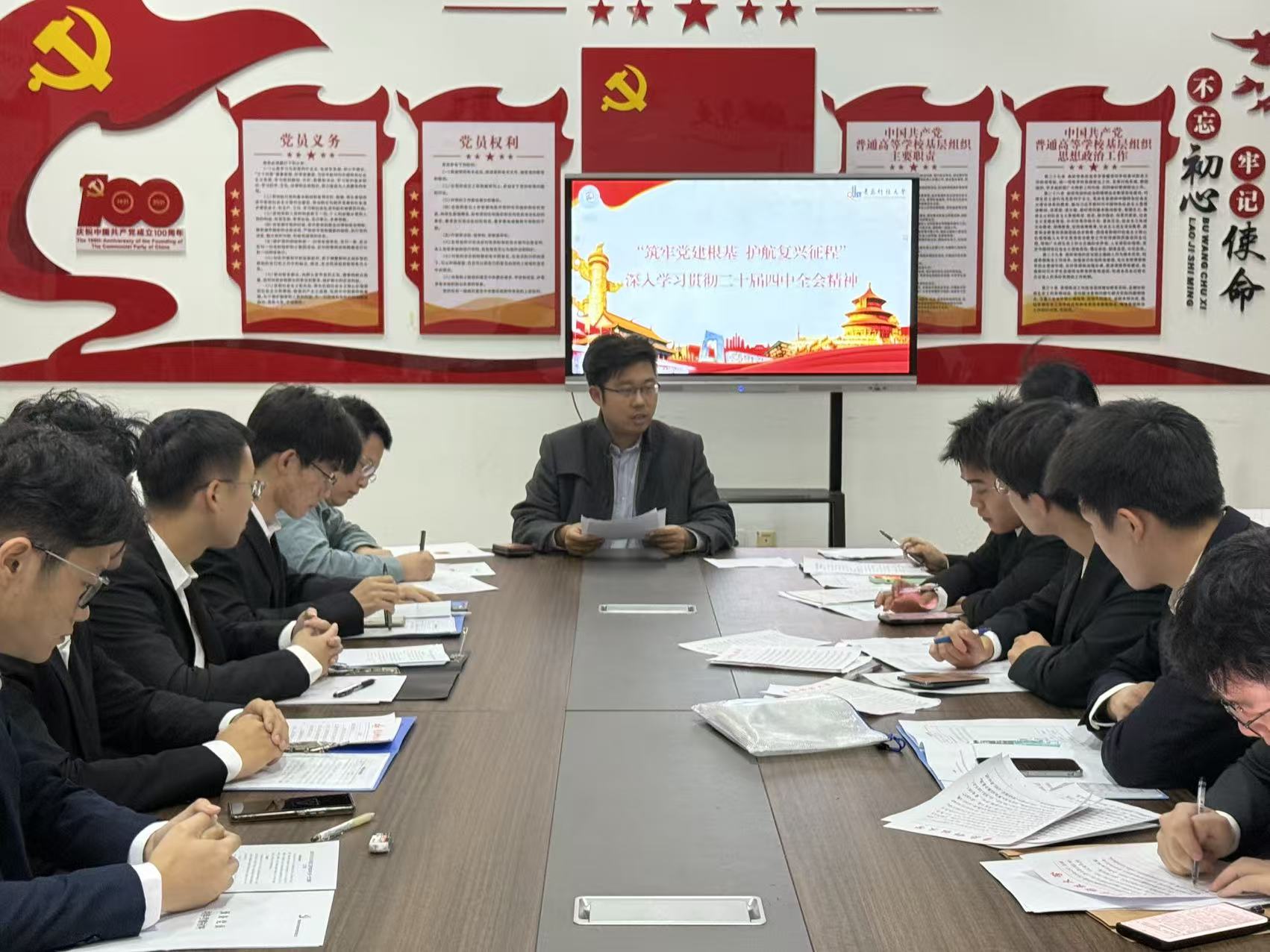 为深入学习贯彻党的二十届四中全会精神,扎实推进青年马克思主义者培养工作,机电工程学院于11月25日举办党的二十届四中全会精神宣讲报告会暨2025-2026学年“青马工程”培训班开班仪式。机电工程学院党委副书记兼副院长杨小明以及学院全体专兼职团干部,青马工程培训班学员、团校学员代表参与本次会议。开班仪式由学院团委副书记李慧敏主持。