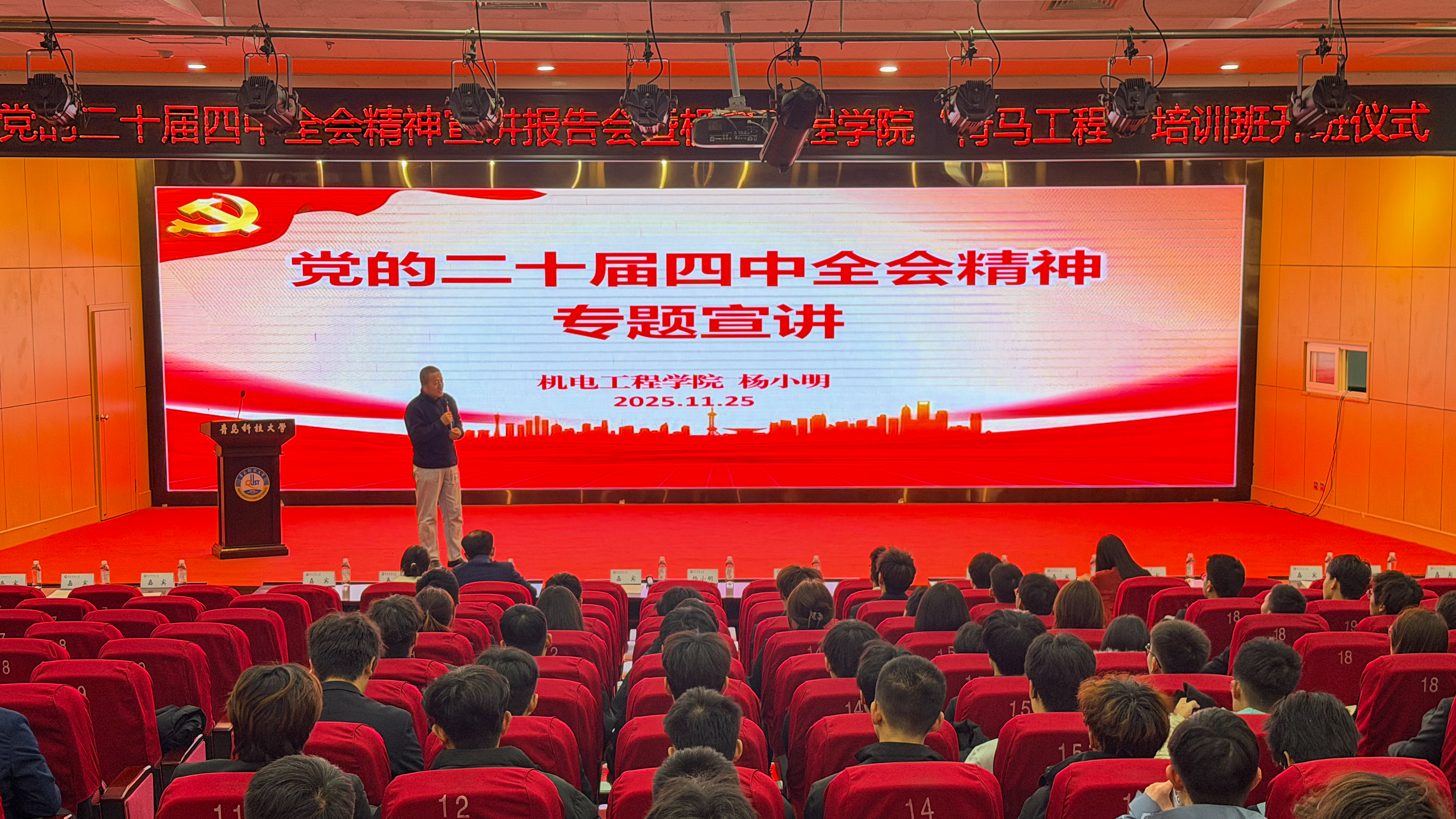 机电工程学院举办党的二十届四中全会精神宣讲报告会暨2025-2026学年“青马工程”培训班开班仪式