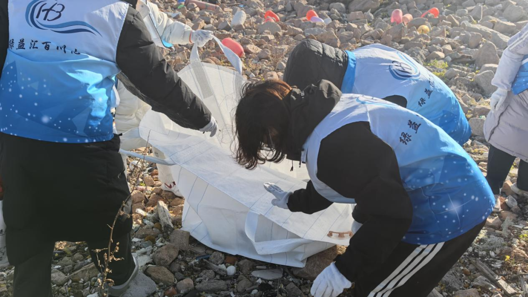 活动现场,100多名志愿者身着志愿马甲,与部队官兵、街道工作人员组成混合小组,沿团岛海岸线有序开展“地毯式”清理。大家手持工具细致清理海滩上的废弃浮球、渔网残渣、泡沫碎片等海洋垃圾,将可回收物与其他垃圾分类装袋。过程中,后天环保协会成员还进行了环保知识讲解,向周边市民传递海洋保护理念,呼吁更多人参与到海岸守护行动中。