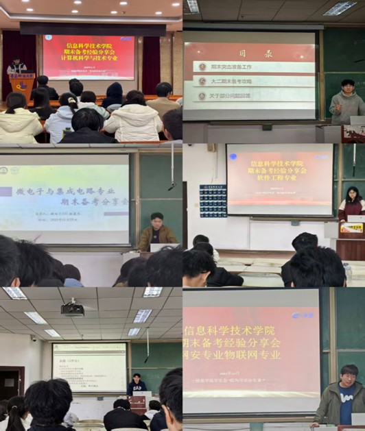 为帮助大一、大二学生梳理期末复习重点、明确备考方向、提升备考效率,信息学院于11月29日在明德楼举办“e+讲堂”|期末学习经验分享会,学院大二、大三优秀学长学姐担任分享嘉宾,部分大一、大二学生参会。