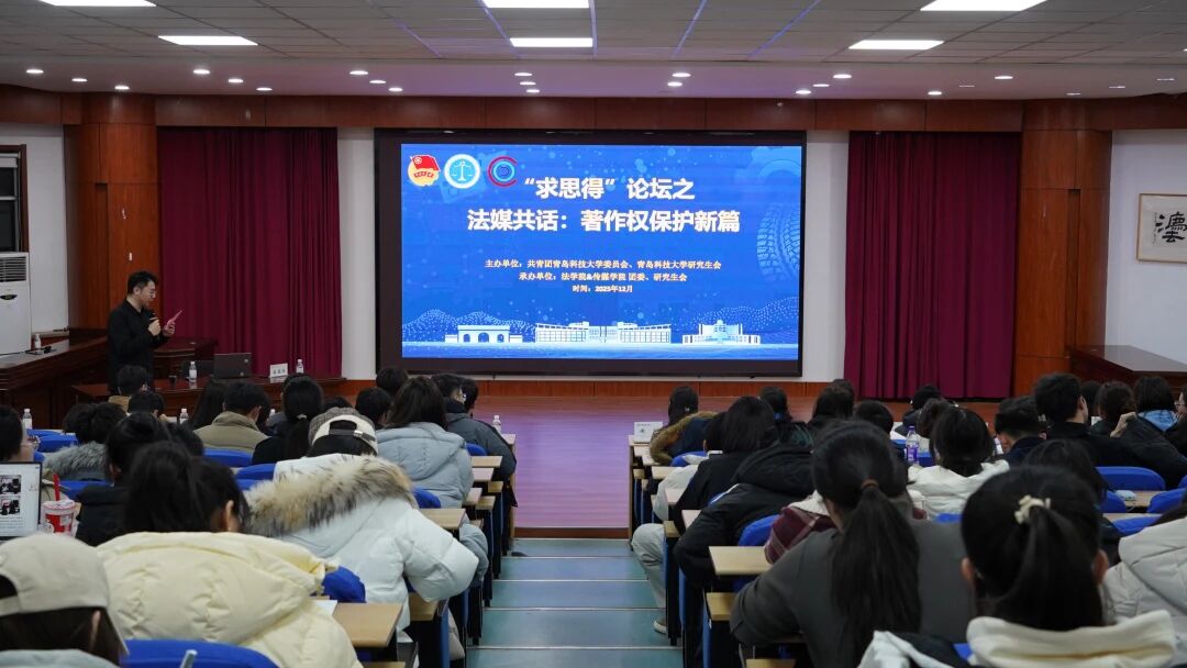 主讲人谢帅博士带来专题分享。她通过最新《著作权法》修订要点,与影视作品结合系统梳理著作权法律体系,深入解读作品传播技术革新所带来的法律挑战,并就青年如何规避侵权风险、依法维护自身合法权益提供清晰指导,为现场学子构建起扎实的法理知识框架。