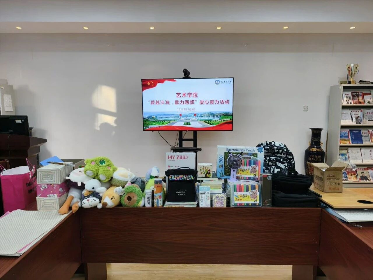 为响应学校号召,支持西部教育发展,在“12·5”国际志愿者日来临之际,艺术学院团委组织开展了“爱越沙海 助力西部”主题爱心捐赠活动。