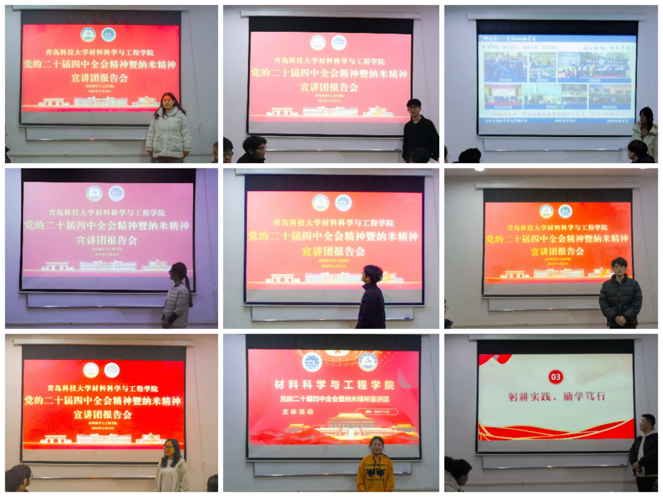 近日,材料学院党的二十届四中全会精神暨纳米精神宣讲会系列活动圆满落下帷幕。自活动启动以来,学院累计举办17期宣讲报告会,27名青年学子组成的宣讲团,以理论阐释与实践分享相结合的方式,让党的二十届四中全会精神落地生根,让“艰苦创业、不断创新、踏实坚韧、与时俱进”的纳米精神薪火相传。