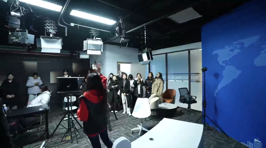参访过程中,同学们始终保持着高昂的热情,时而认真记录关键信息,时而围绕专业应用与前辈深入探讨。有的同学联想到校园宣传工作,感慨道:“这次参访让我明白,校园宣传也要像专业传媒人一样,注重内容的吸引力与传播力,未来我会把学到的技巧运用到学院宣传工作中,让更多人看到外院的风采。”亦有同学坦言:“这次参访让我明确了努力方向,今后要不断提升‘外语+传媒’的复合能力,像澎聚传媒的前辈们一样,用专业能力传递有温度、有力量的声音。”