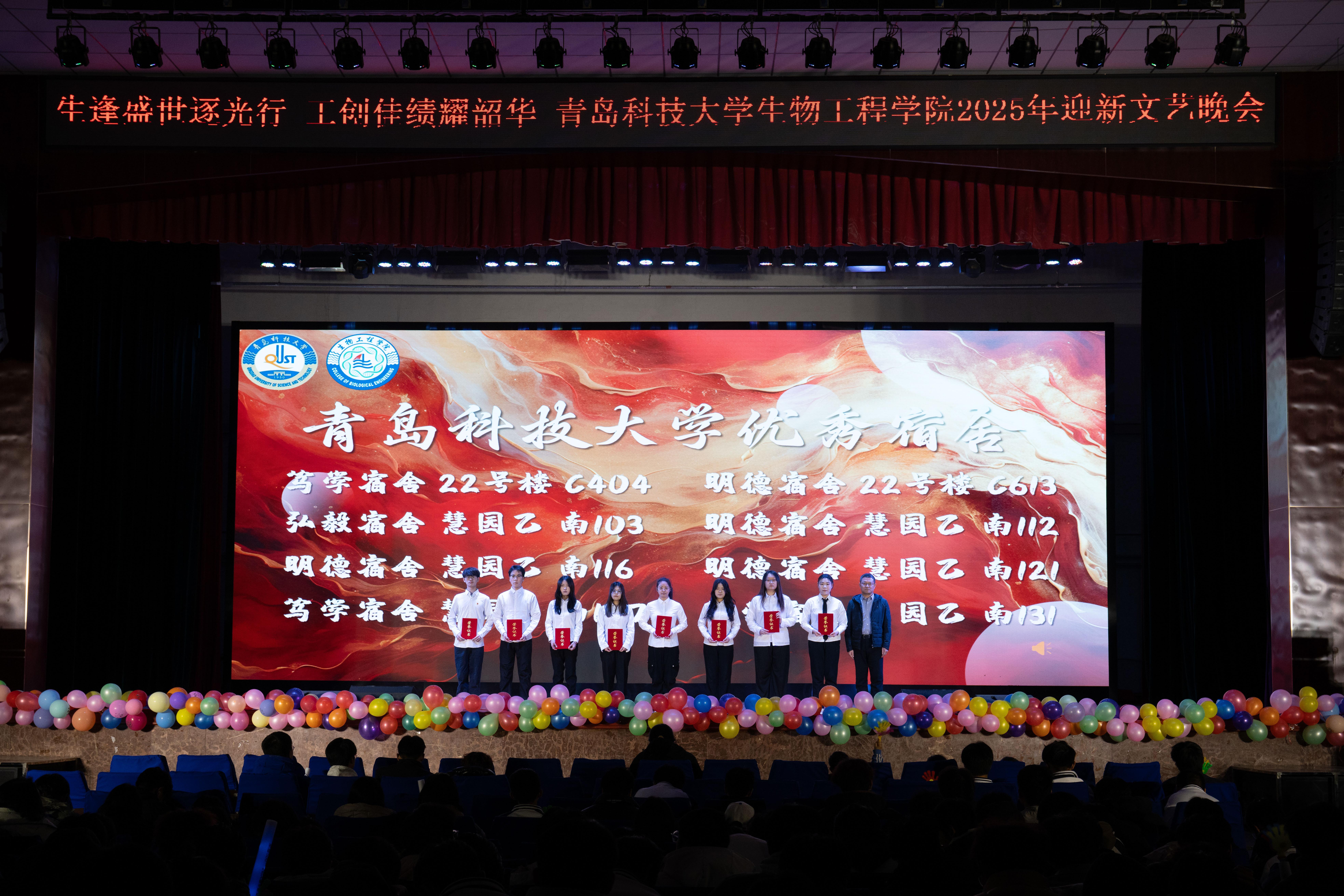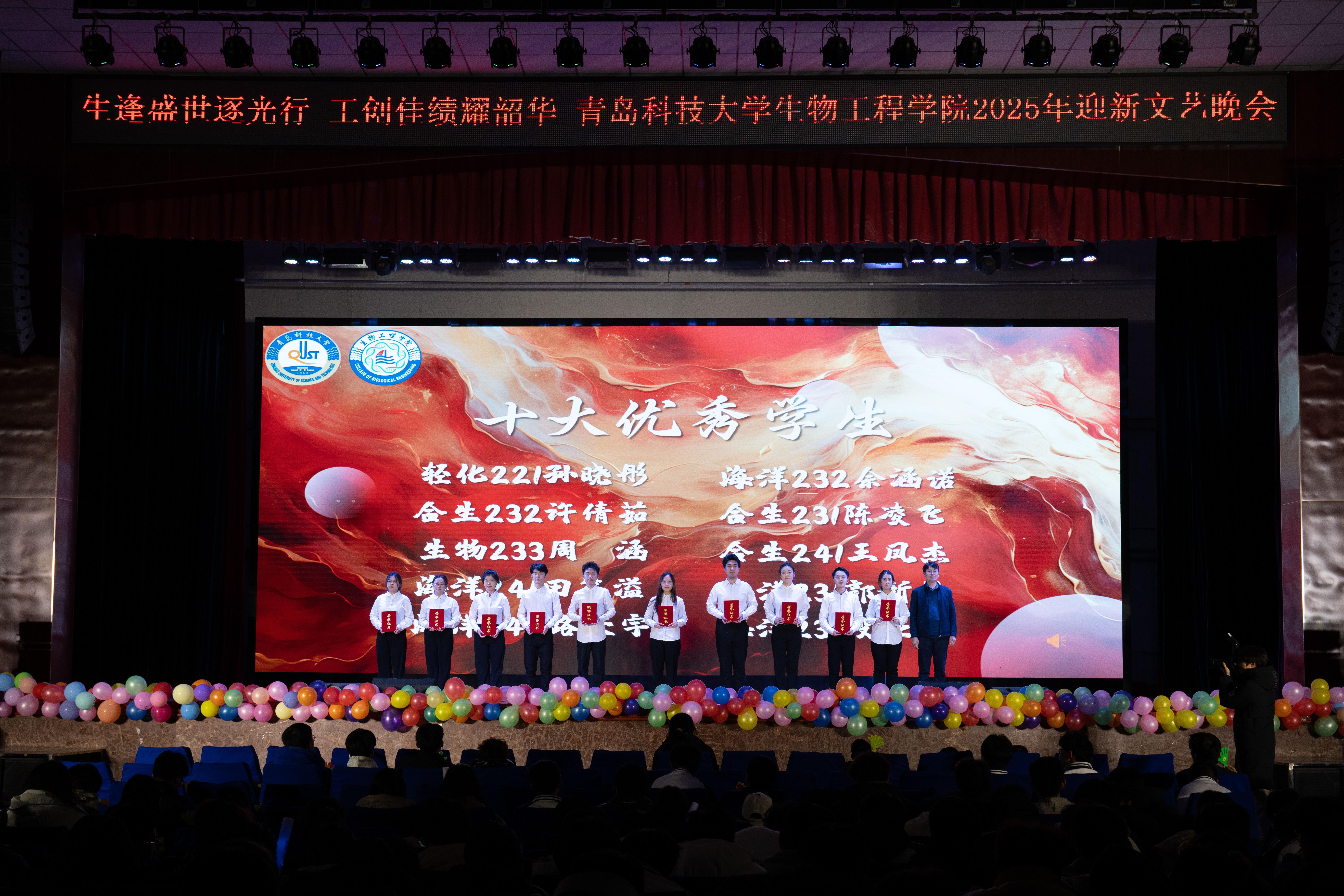 为激励广大生工青年勇担时代重任,传承青春力量,近日,生物工程学院团委在四方校区西礼堂举行“生逢盛世逐光行,工创佳绩耀韶华”2025年迎新晚会。生物工程学院院长顾玉超、党委副书记兼副院长刘浩、洛阳路街道周口路社区党委书记李静、学院团委书记秦洪庆、全体团干部和2024级、2025级全体学生参加活动。
