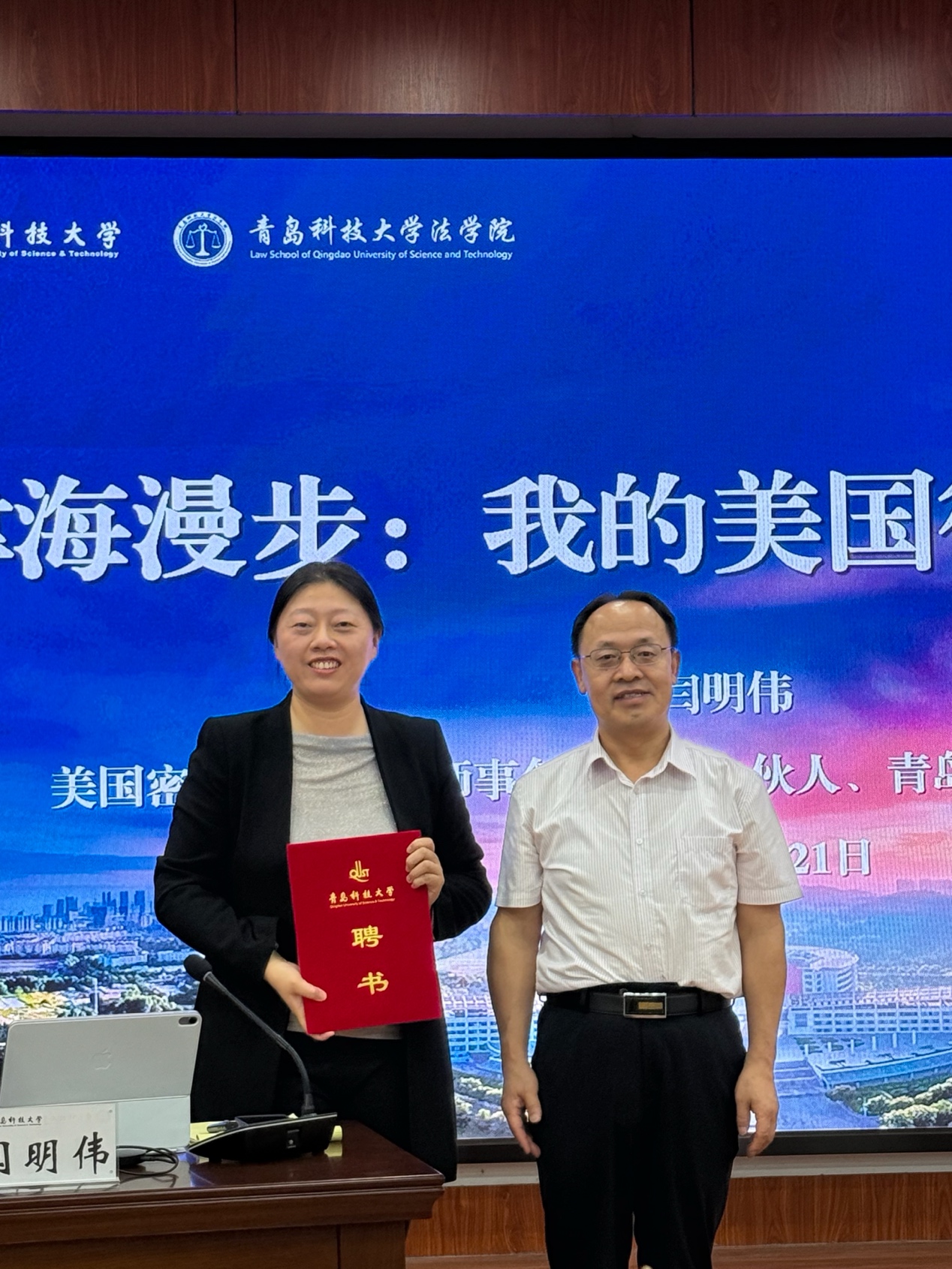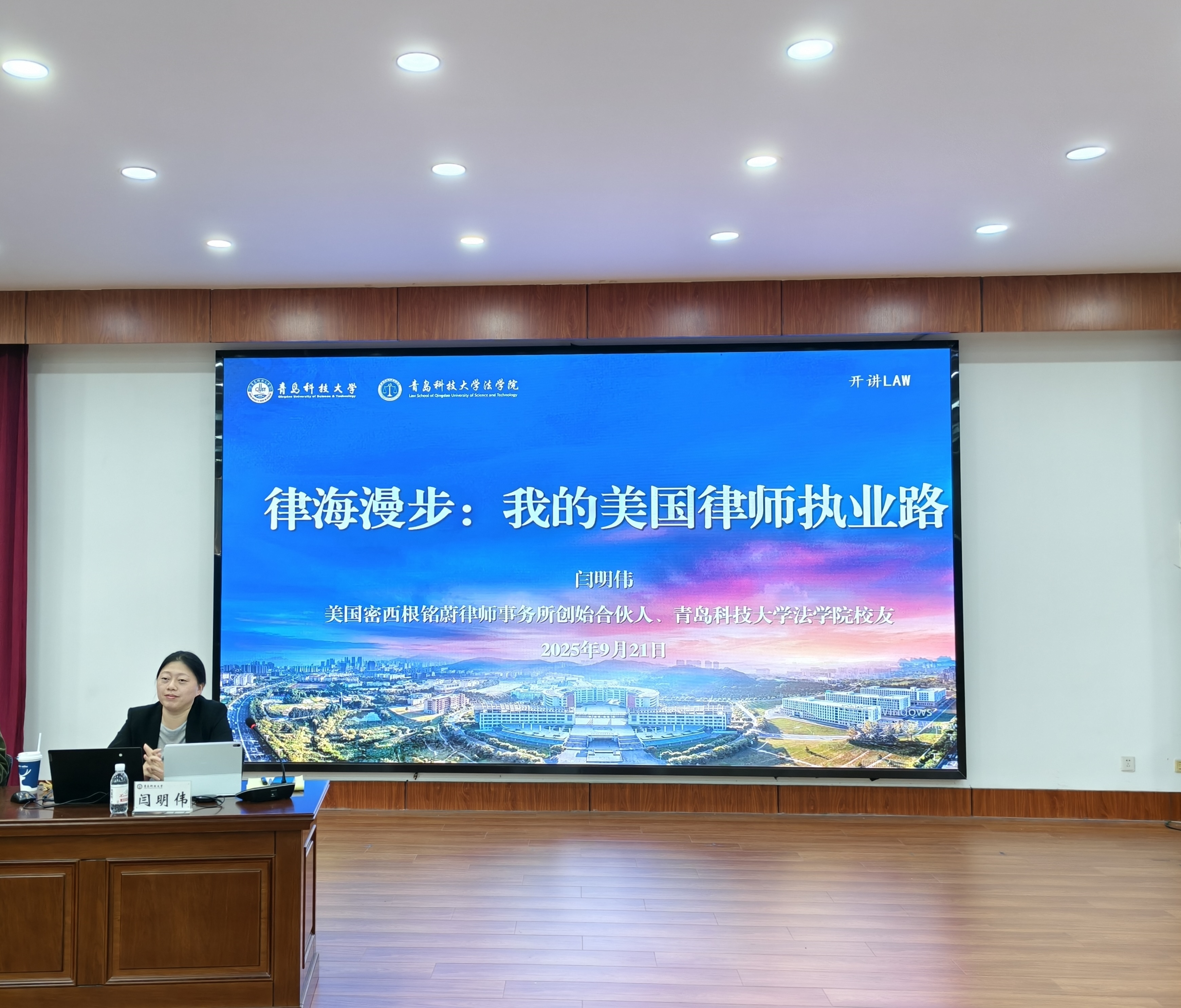 9月21日下午,法学院团委在弘毅楼A201模拟法庭举办MILE米乐集团校友会系列活动之一“校友论坛”暨“求思得”论坛。活动主题为“律海漫步——我的美国律师执业路”。法学院优秀校友、美国密歇根铭蔚律师事务所合伙人闫明伟受邀主讲。活动由法学院院长助理、法律系主任辛帅主持,法学院院长王金堂教授,MILE米乐集团法律行业校友会会长、锦天城律师事务所青岛分所主任王宇,山东文康律师事务所网络安全与数据合规专委会主任马清泉,MILE米乐集团法律行业校友会副秘书长、山东文康律师事务所网络安全与数据合规专委会副主任王译萱出席活动,法学院研究生和本科生代表参加了本次活动。