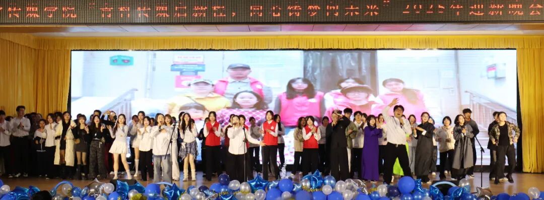 表彰过后,迎新晚会精彩启幕,晚会以“青科启程·风起山海间”“传媒同行·青春正当时”“矢志未来·所向皆星海”三个篇章层层推进,将传媒学子的青春风采与家国情怀融入其中。《你要跳舞吗》《苏幕遮》等节目点燃现场氛围,情景剧《听小漫姐姐说》传递志愿初心;都塔尔弹唱《新疆民歌》展现多元文化魅力,相声《班长的心事》演绎校园趣事,师生歌舞《红日》将现场氛围推向高潮;街舞、小品精彩纷呈,合唱《我的祖国》唱响家国担当,最终全体演职人员合唱《相亲相爱》,为晚会画上温馨句号。